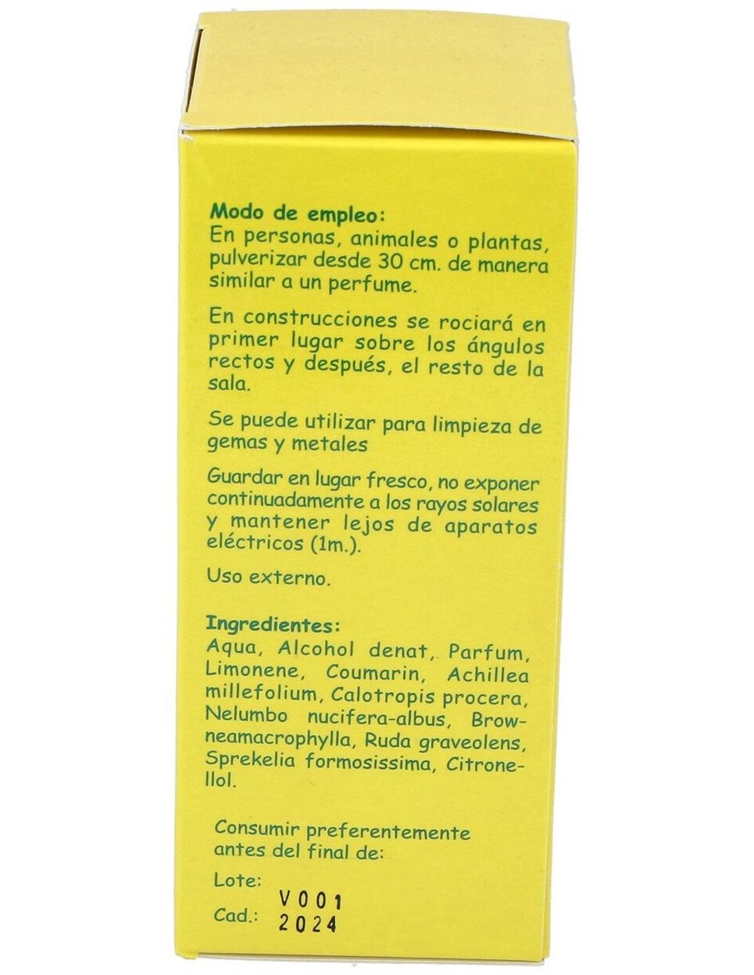 Spray de uso externo con esencias florales obtenidas de flores silvestres. Armonizador energético. Revitalización, limpieza y desbloqueo energéticos del campo electromagnético de los seres vivos. Ofrece protección energética preventiva de la contaminación ambiental y de las radiaciones producidas por el deterioro de la capa de ozono.