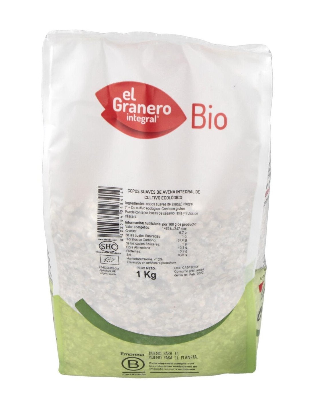 Copos De Avena Suaves Integral 1Kg. Bio de El Granero
