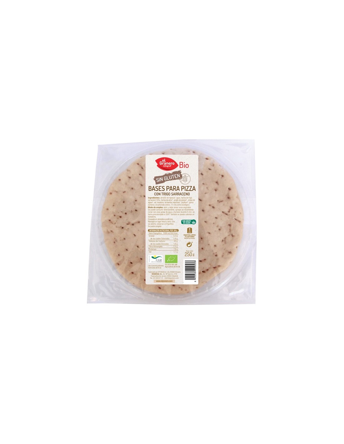 Bases De Pizza Con Trigo Sarraceno Sin Gluten Bio, 2 Uds. 250 G de El Granero Integral
