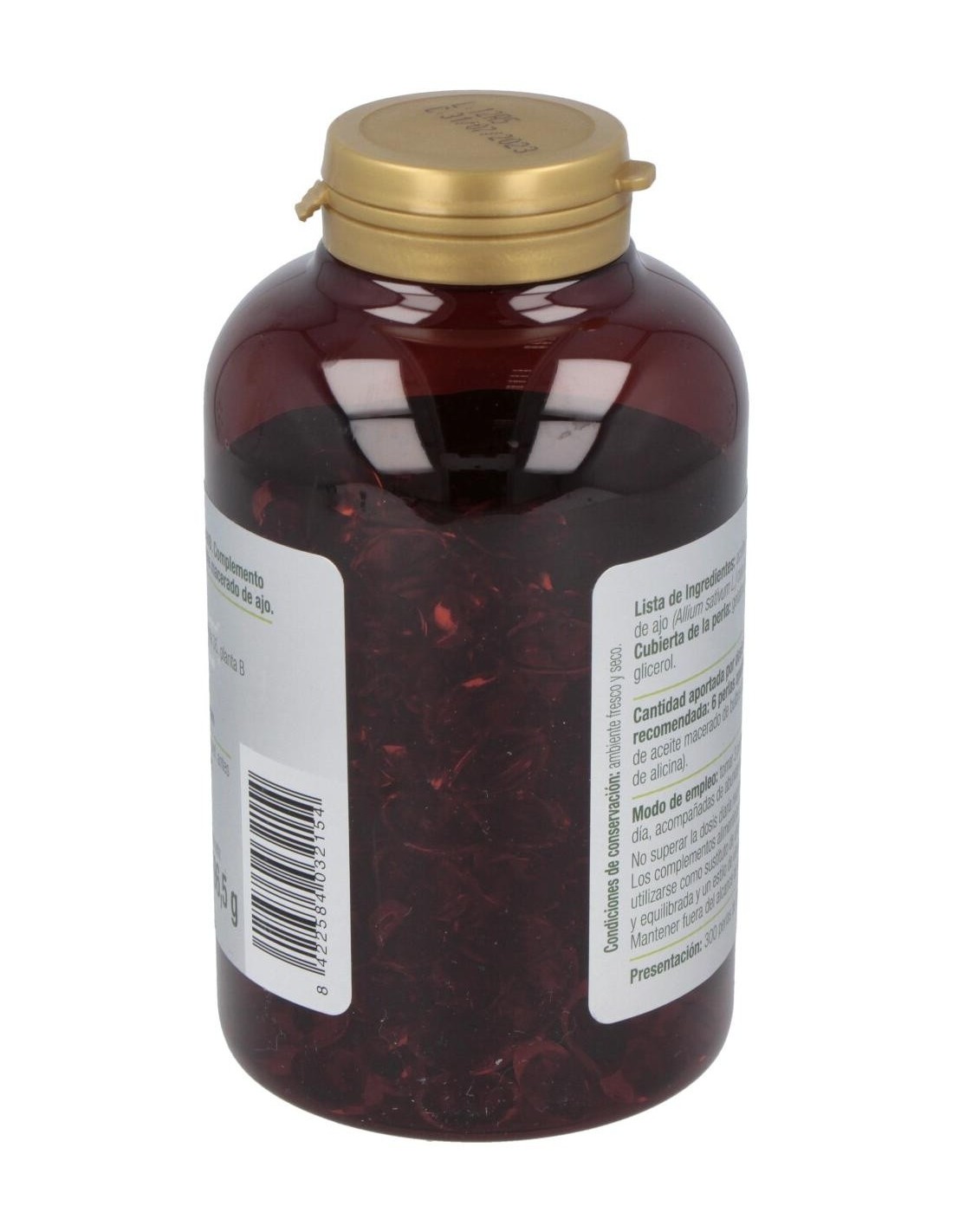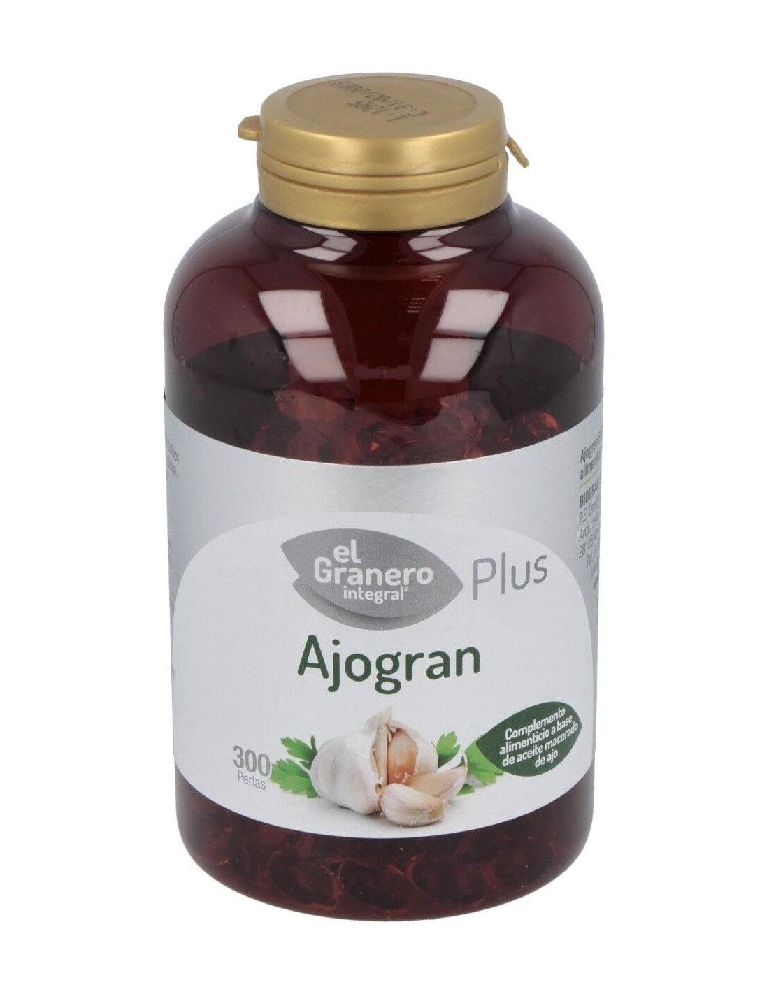 Complemento alimenticio formulado a base de aceite macerado de bulbos de ajo. Envase de 300 perlas. Contribuye a la normal circulación sanguínea. Al ajo se le atribuyen propiedades antioxidantes, antibacterianas y laxantes. Es usado en casos de tos, resfriados y para el normal mantenimiento de niveles de colesterol. Indicado para adultos.