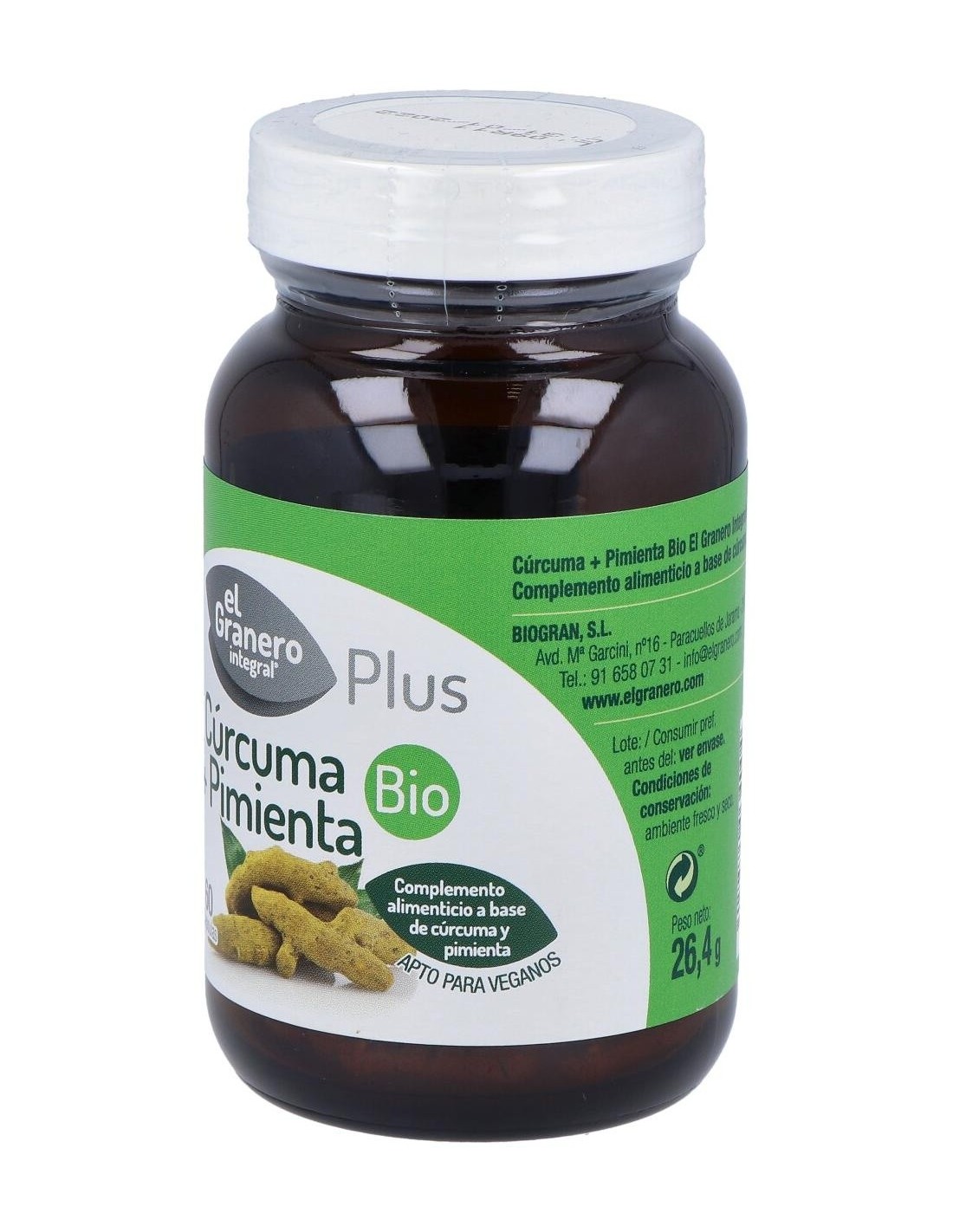 Es un complemento alimenticio que combina los beneficios de la cúrcuma y de la pimienta. La cúrcuma es una planta de origen asiático con muchas propiedades medicinales, muy apreciada tanto en la medicina china como en la ayurvédica. La raíz de la cúrcuma es rica en curcumina, el principal principio activo de la cúrcuma, responsable también del color amarillo característico de la cúrcuma. Es un gran antioxidante y digestivo. Las bayas de pimienta negra contienen una sustancia llamada piperina, la cual favorece la absorción de la curcumina. Por ello, este producto combina ambos componentes para que se pueda beneficiar al máximo de sus propiedades.