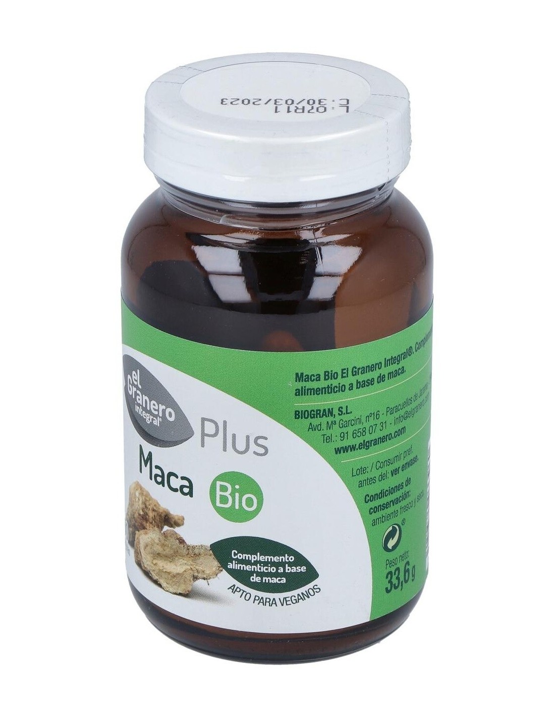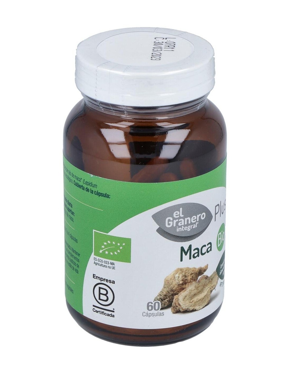 Es rica en nutrientes que están relacionados con la actividad, como aminoácidos y glucosinolatos. La maca es una planta herbácea nativa de los Andes de Perú y Bolivia, es un poderoso reconstituyente, tanto del cuerpo como de la mente, sus principios activos son alcaloides, glicosinolatos y esteroles que equilibran la producción de hormonas sexuales. De los 18 aminoácidos que se encuentran en la raíz de maca, 7 son aminoácidos esenciales y se encuentran en concentraciones superiores a los de otras raíces y tubérculos y son cercanas a las encontradas en la leche humana, leche y carne de vaca, huevo y pescado. Contiene abundantes carbohidratos, proteínas, ácidos grasos insaturados y minerales. Gracias a este alto valor nutricional contribuye a la vitalidad y combate el cansancio.