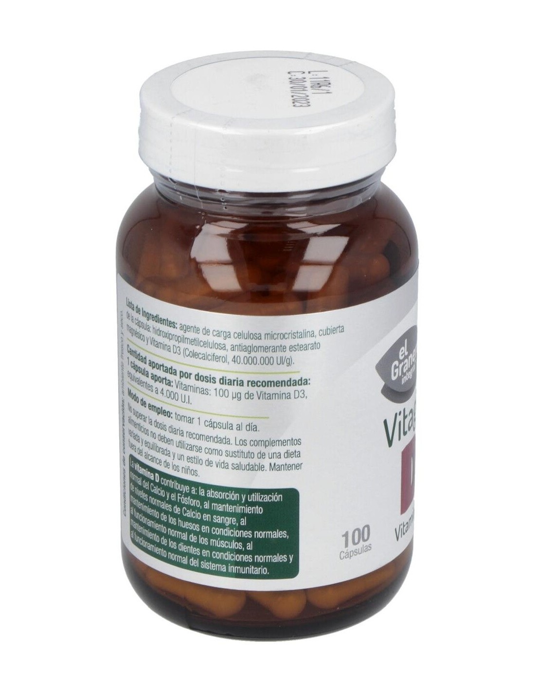 Por 1 cápsula: Vitamina D3 (4e+07 UI), Vitamina D3 / Colecalciferol (4e+06 UI), Estearato de magnesio, Hidroxipropilmetilcelulosa.