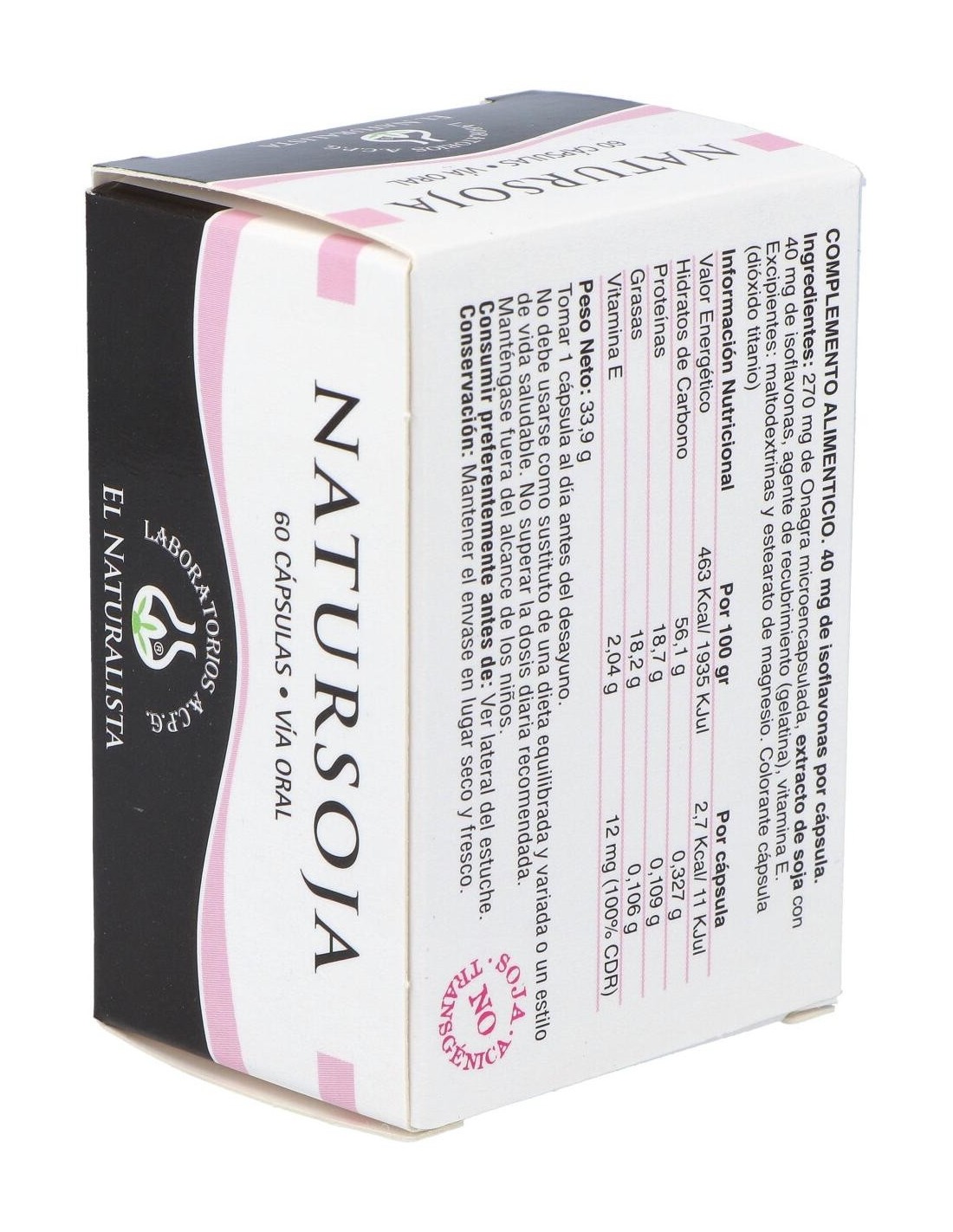 EL NATURALISTAProducto a base de extracto de soja rico en isoflavonas, aceite de onagra microencapsulado y vitamina E natural. Ayuda en el tratamiento de los síntomas vasomotores de la menopausia (sofocos, sudores nocturnos, palpitaciones).