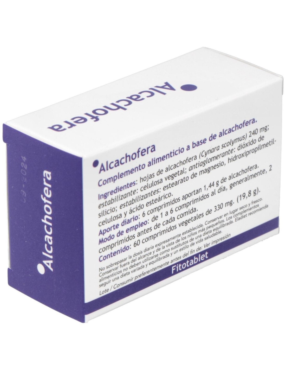 Alcachofera (hojas) 240 mg y celulosa vegetal.