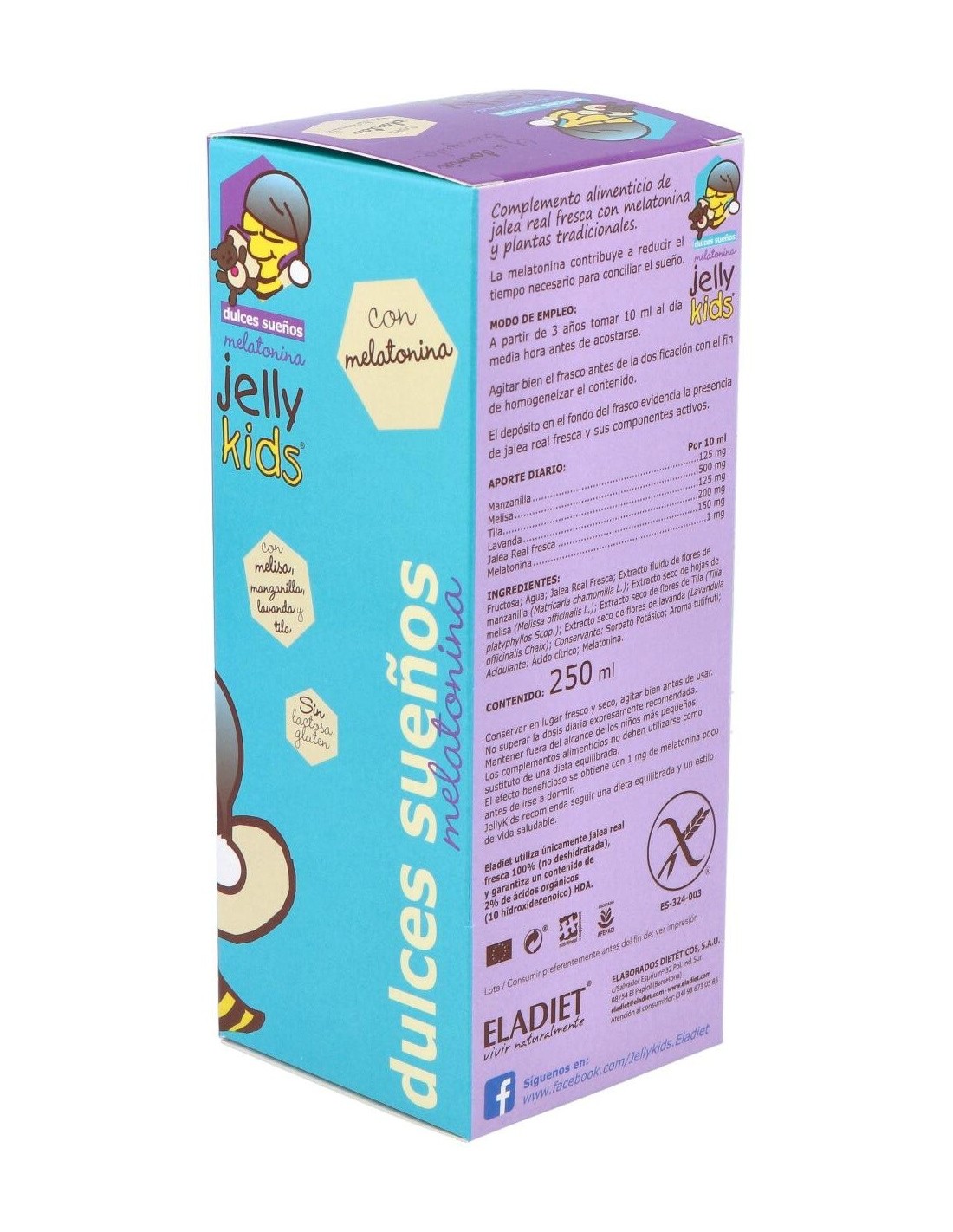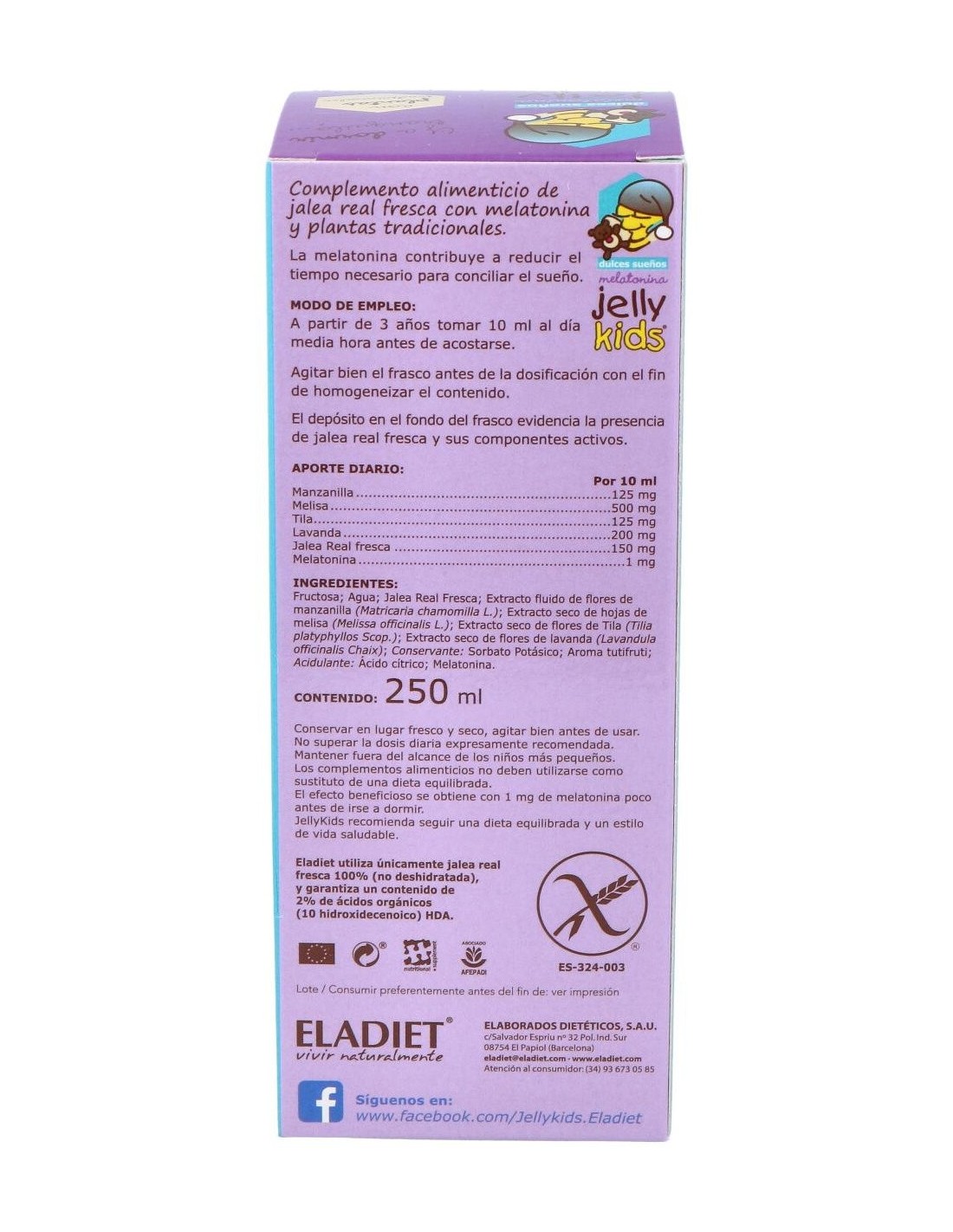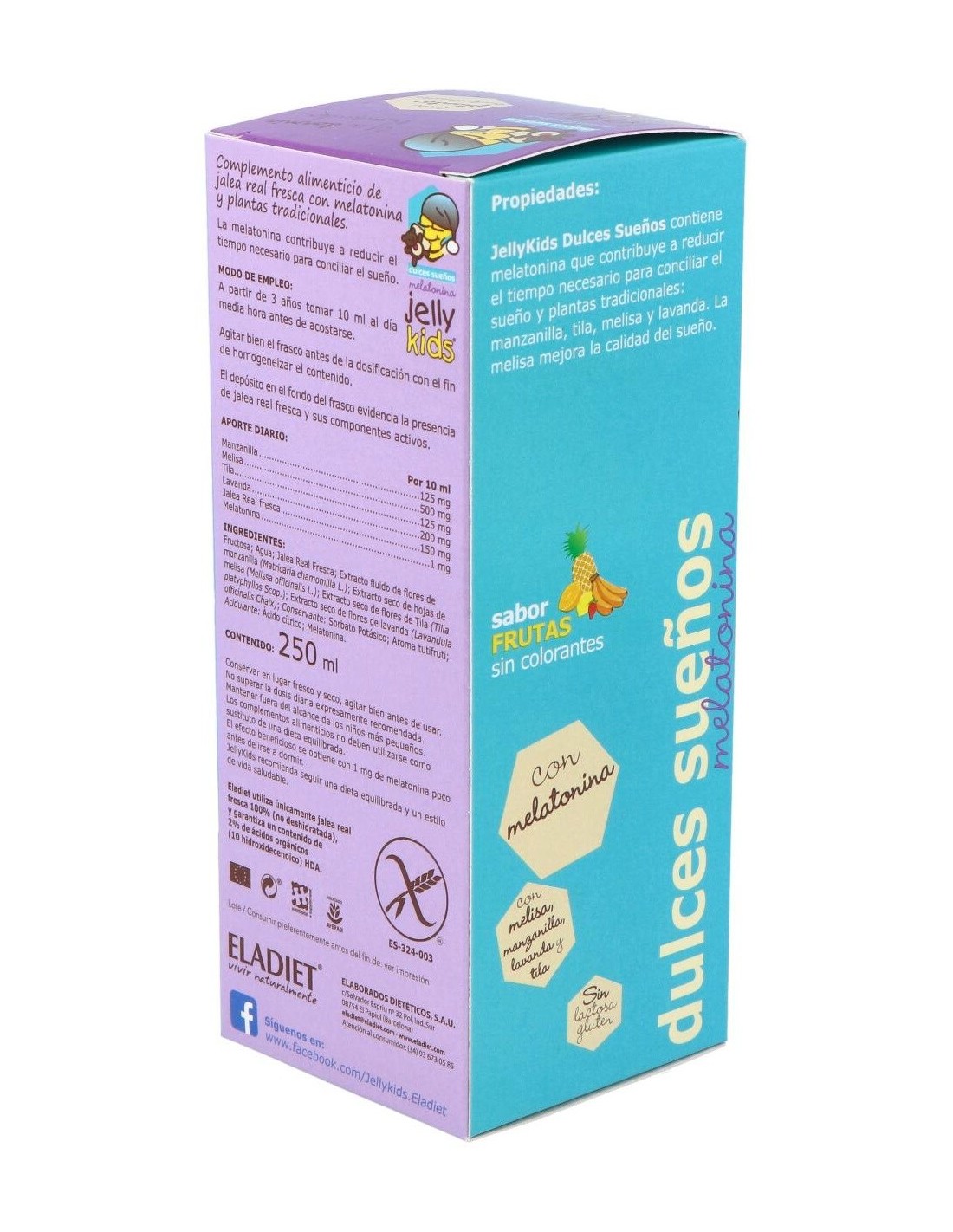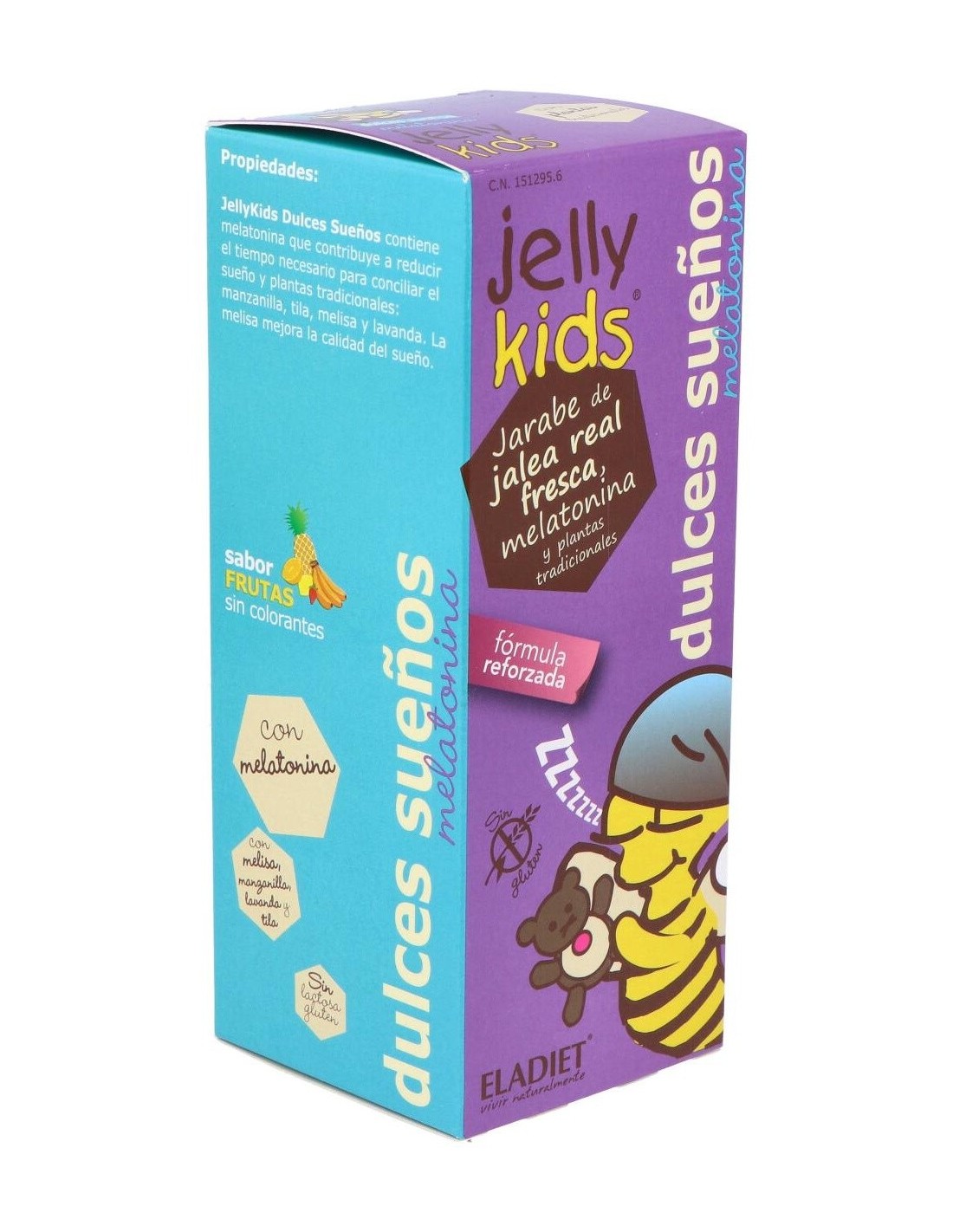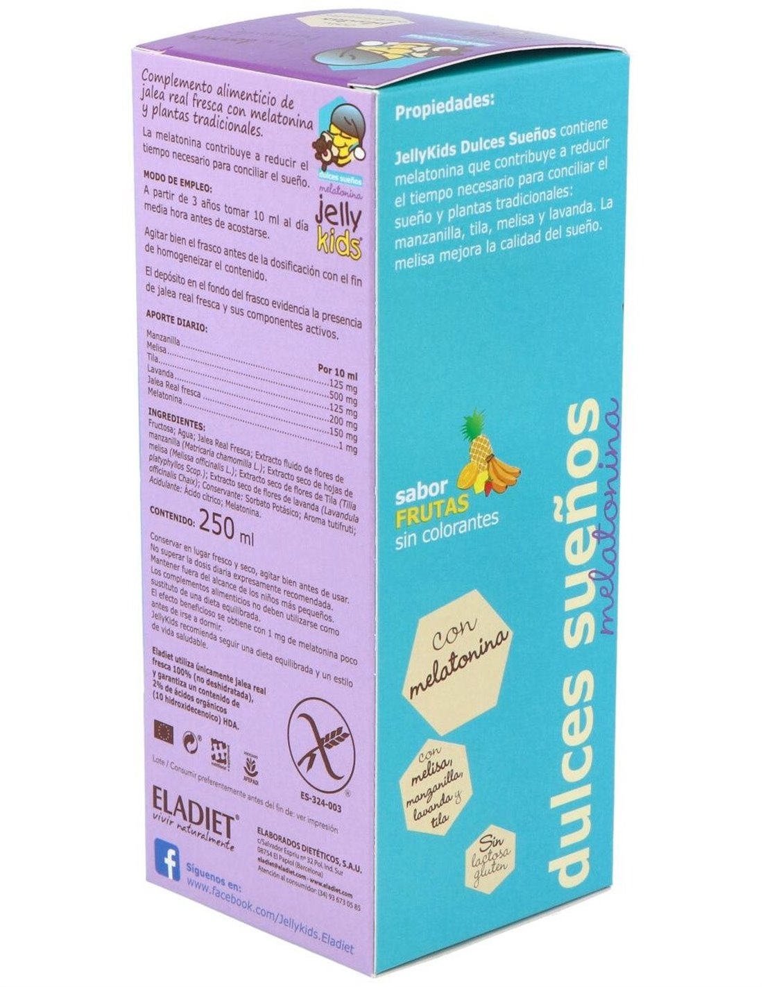 ELADIETComplemento alimenticio de jalea real fresca, plantas tradicionales y melatonina. La melatonina contribuye a reducir el tiempo necesario para conciliar el sueño.