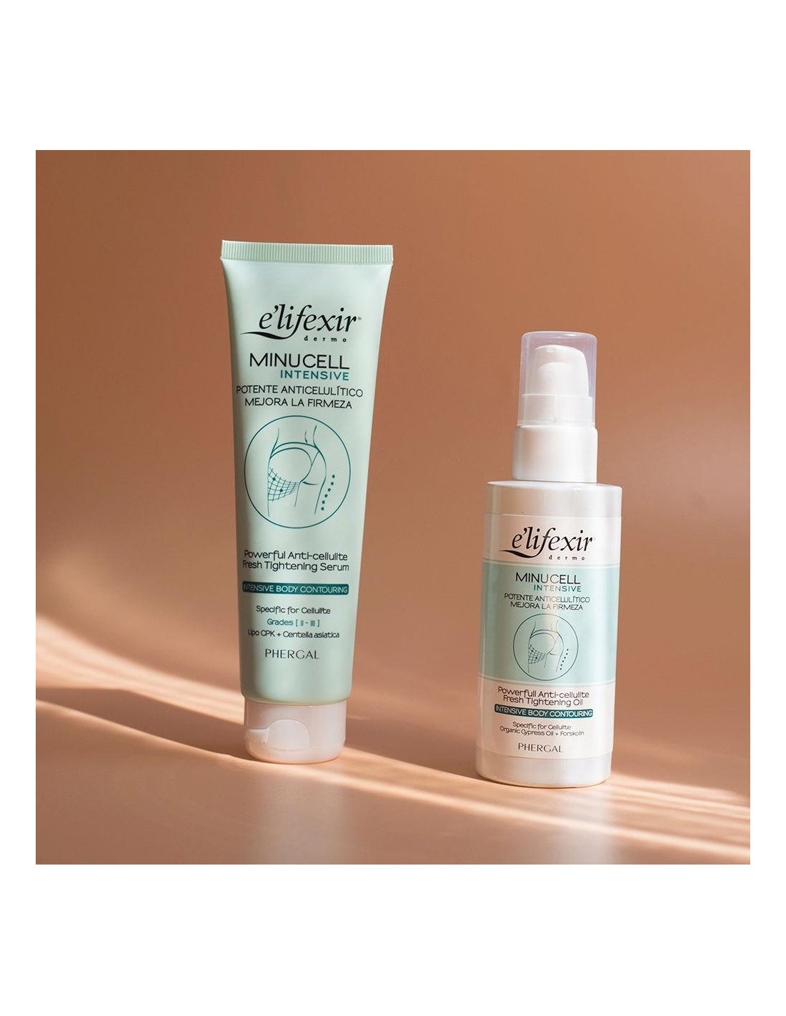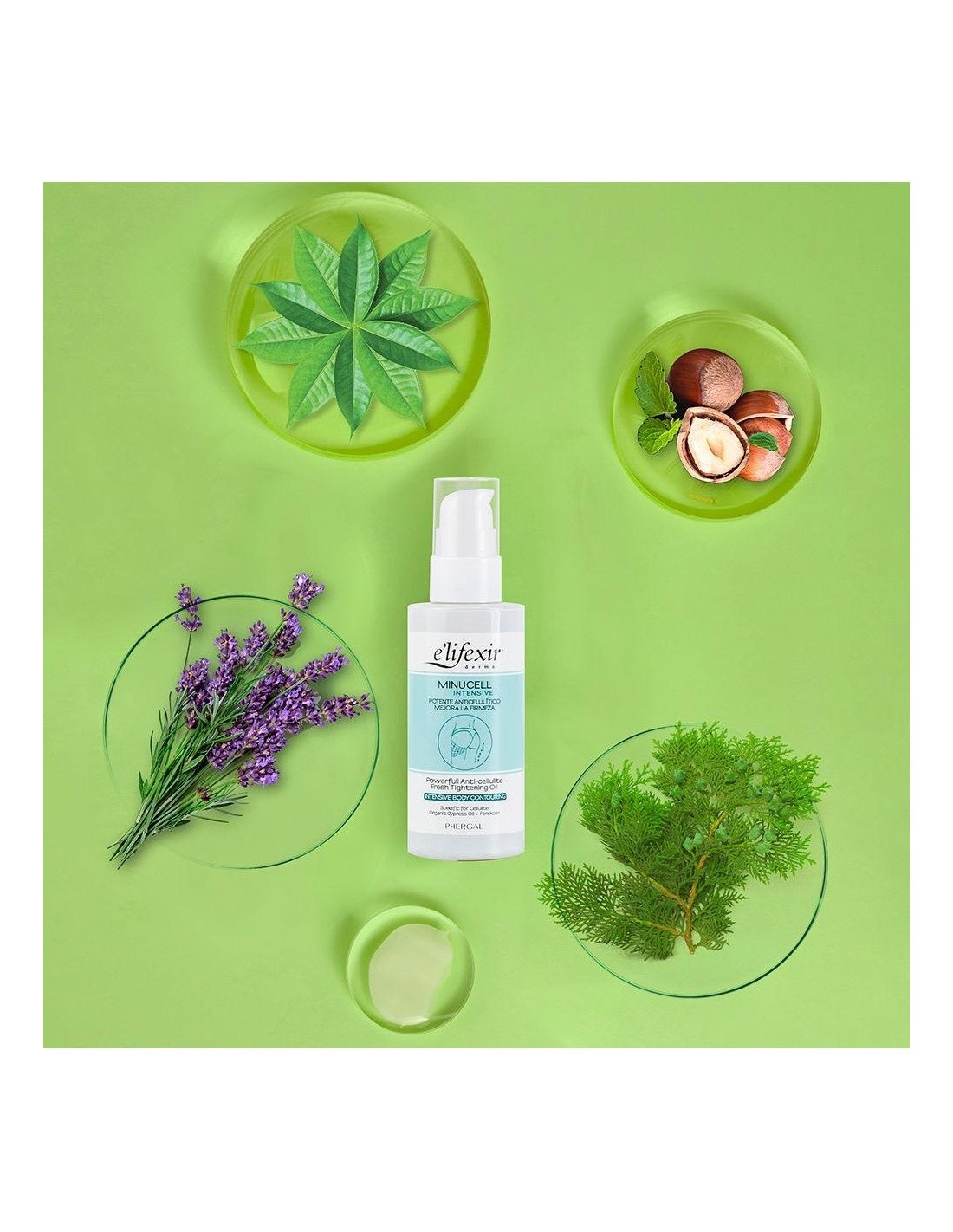 ELIFEXIRPotente tratamiento que ejerce una triple acción: anticelulítico, drenante y reafirmante. La combinación de sus poderosos activos, los Aceites de Ciprés, Niaouli y Lavanda, Forskolin y el extracto de Té Verde consiguen de forma inmediara que la piel se transforme más lisa, con una textura suave, firme y elástica.