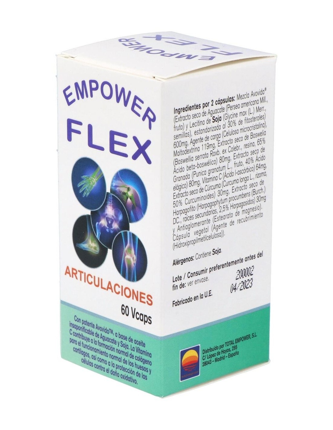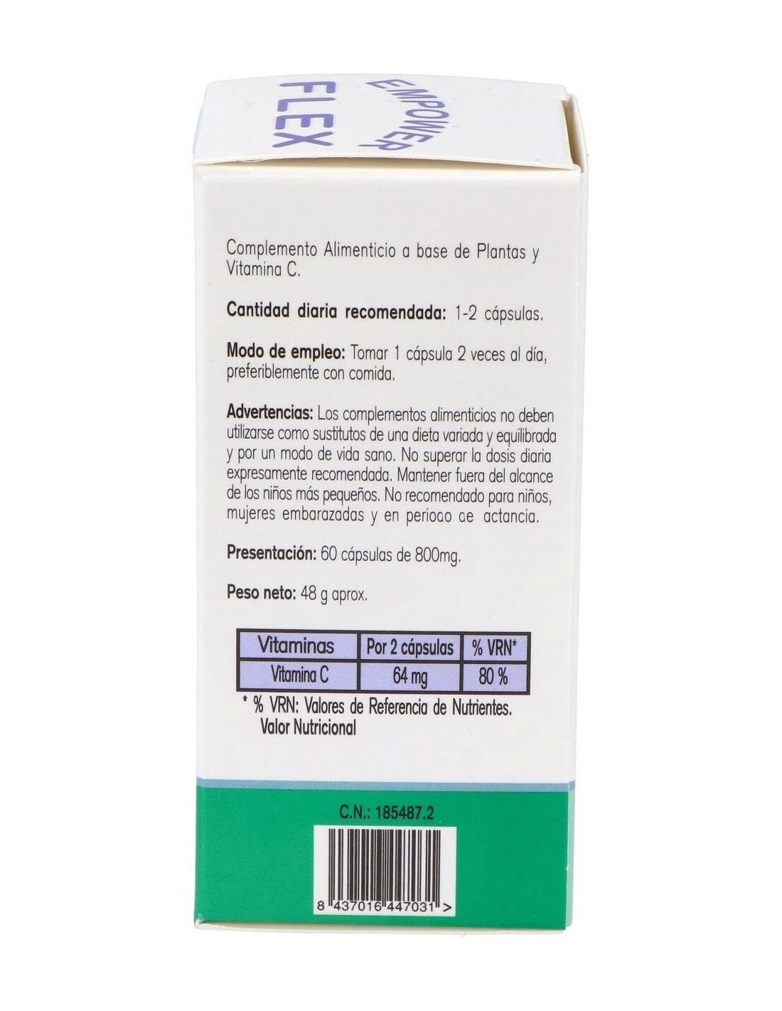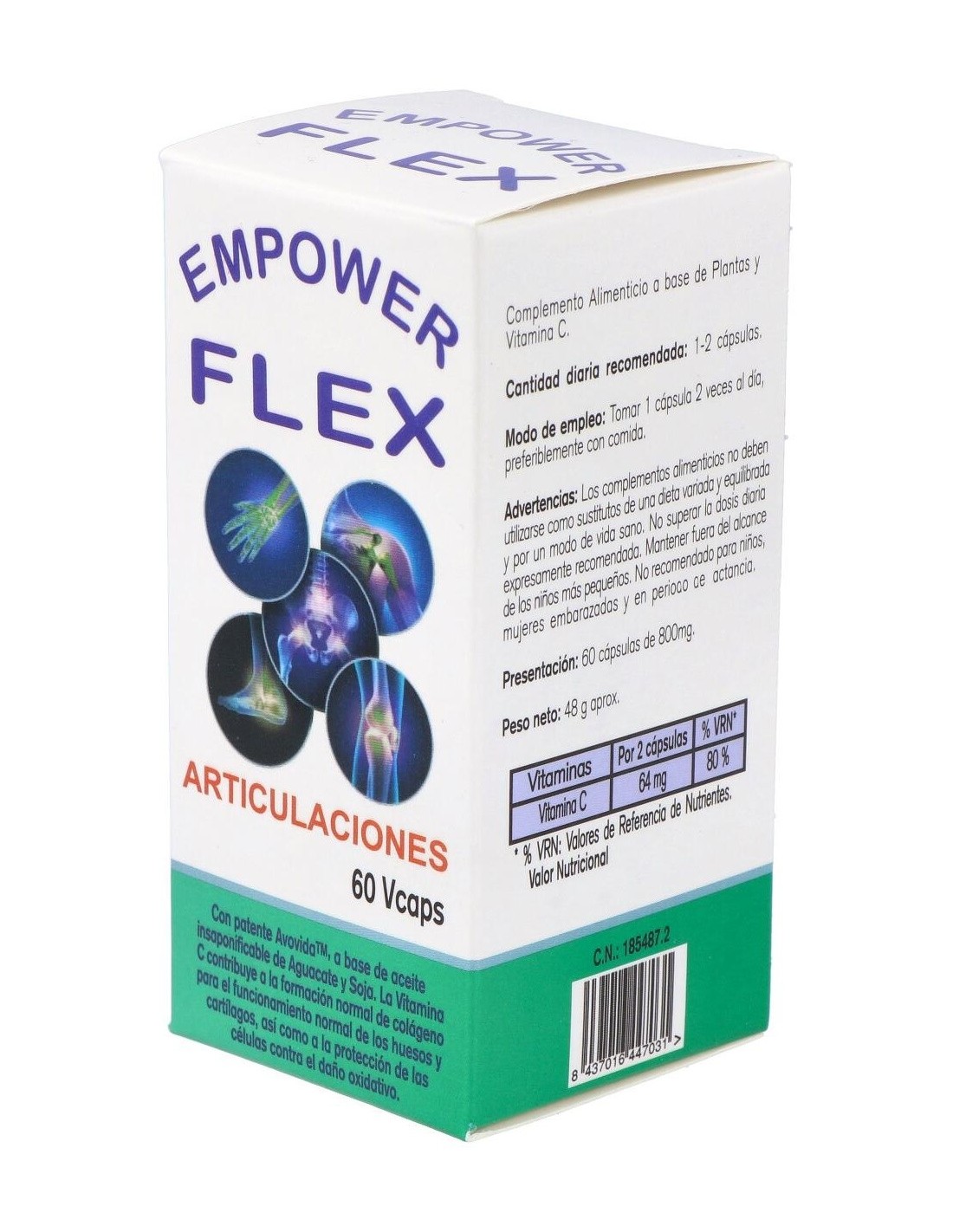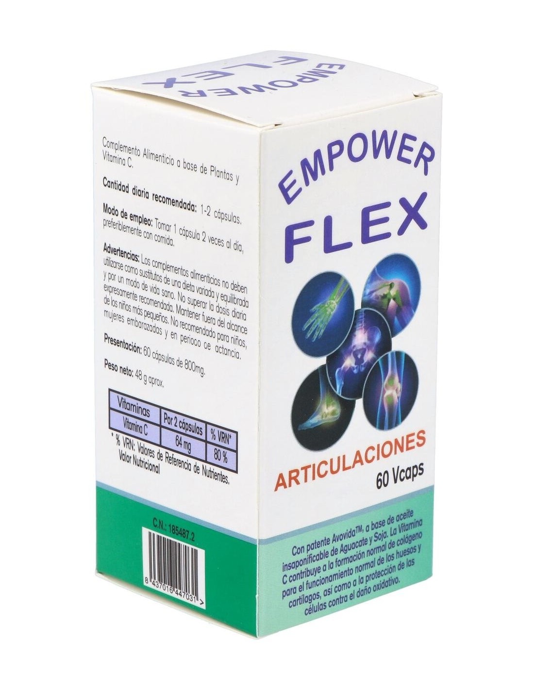 Complemento alimenticio a base de plantas y vitamina C. Elaborado con ingredientes que proporcionan propiedades beneficiosas para cuidar el organismo. Con patente Avovida (TM) , a base de aceite insaponificable de aguacate y soja; La vitamina C contribuye a la formación normal de colágeno para el funcionamiento normal de los huesos y cartílagos, así como a la protección de las células contra el daño oxidativo. Alérgenos: contiene Soja.