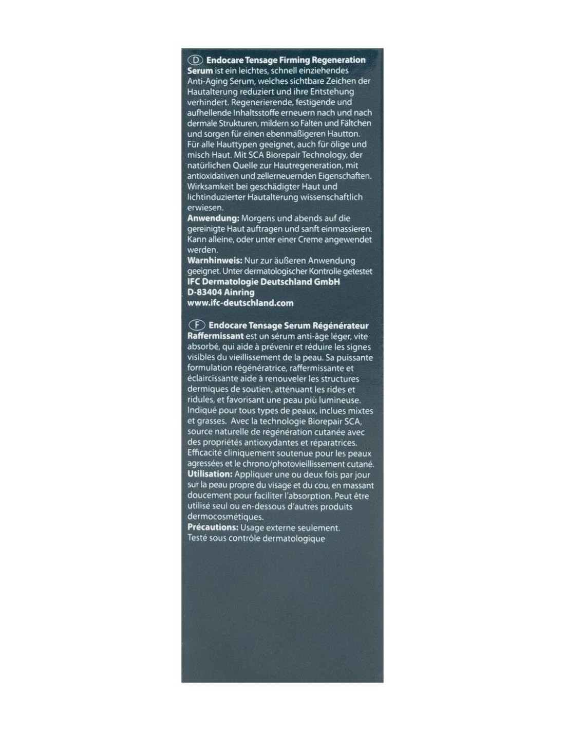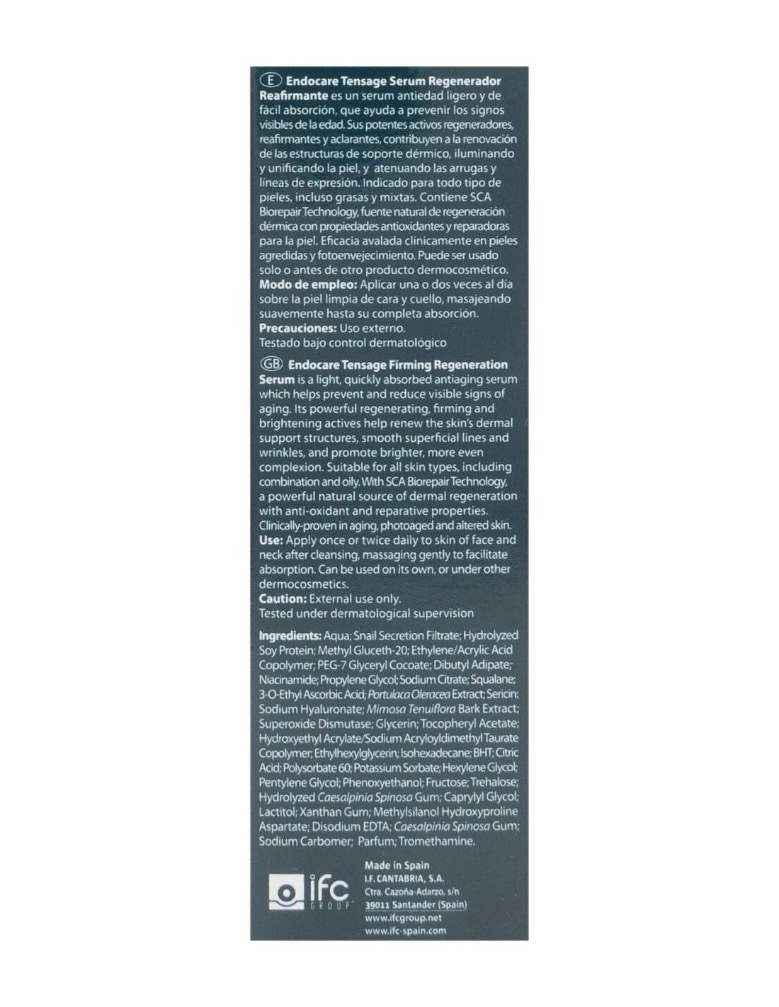 Sérum ligero de fácil absorción indicado en todo tipo de pieles que devuelve a la piel la firmeza y elasticidad perdidas. Formulado con SCA® Growth Factor Technology y Tensderm combinado con potentes activos regeneradores, reafirmantes y aclarantes que contribuyen a la renovación de las estructuras de soporte dérmico, iluminando y unificando la piel, y atenuando las arrugas y líneas de expresión. Testado bajo control dermatológico.