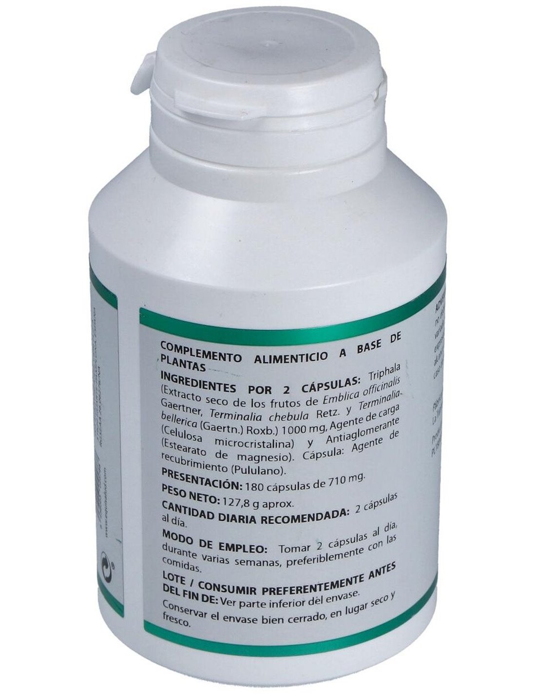 Complemento alimenticio a base de triphala. Es una fórmula medicinal compuesta por amalaki, haritaki y vibhitaki en la misma proporción. Cada componente tiene una actividad específica: amalaki actúa contra la inflamación, haritaki actúa contra la degeneración y Bibhitaki contra la congestión. Apto para vegetarianos, diabéticos y pacientes con dietas restrictivas.