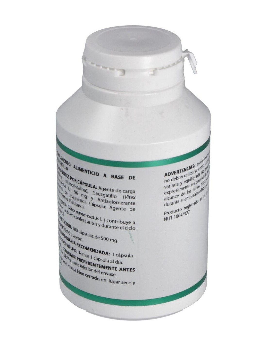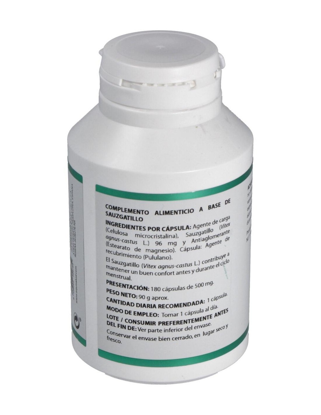 Sauzgatillo extracto seco (Vitex agnus-castus L.), 96 mg. Envoltura: polisacárido de origen vegetal (pululano).