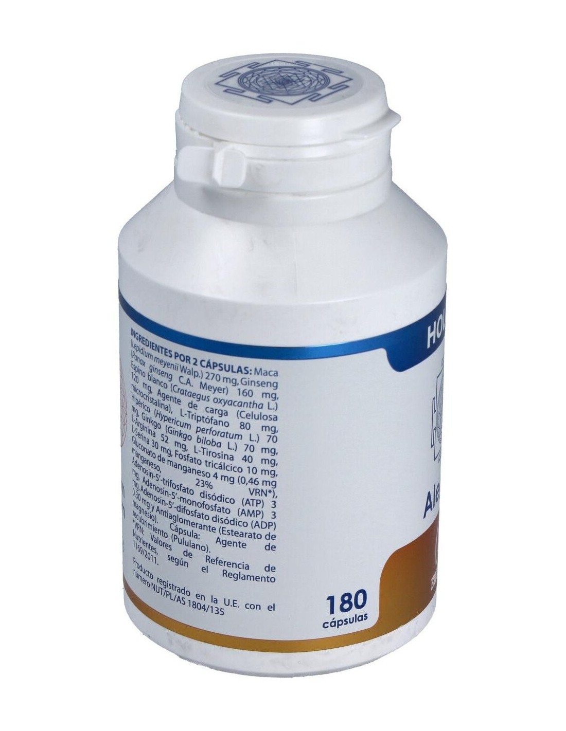 ATP, ADP, AMP, Hipérico, Espino blanco, Maca, Ginseng, Ginkgo, L-Tirosina, L-Arginina, L-Triptófano, L-Serina, Gluconato de Manganeso, Fosfato Tricálcico. Envoltura de polisacárido de origen vegetal (pululano).