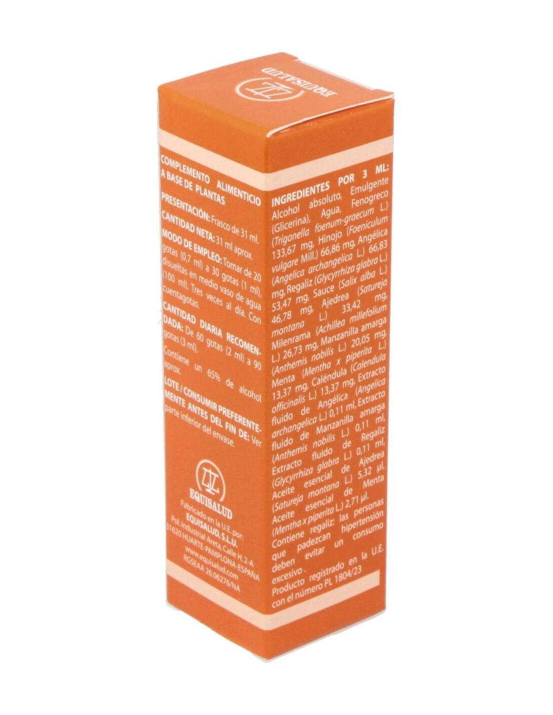 AGUA PURIFICADA, AJEDREA, ALCOHOL ABSOLUTO, ANGÉLICA, CALÉNDULA, FENOGRECO, GLICERINA, HINOJO, MANZANILLA AMARGA, MENTA, MILENRAMA, REGALIZ, SAUCE.
