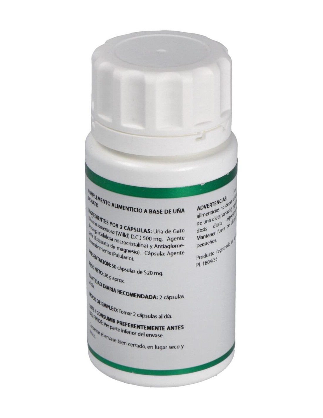 UÑA DE GATO EXTRACTO NEBULIZADO (UNCARIA TORMENTOSA, CORTEZA, >3% UNCARINA E), CELULOSA MICROCRISALINA (E-460). ENVOLTURA: PULLULAN (POLISACÁRIDO DE ORIGEN VEGETAL).