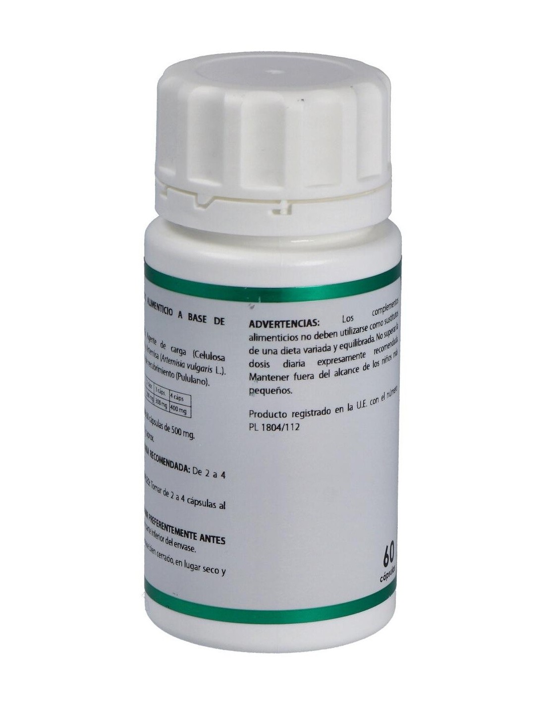 Complemento alimenticio a base de artemisa. Tiene propiedades desinfectantes del tracto digestivo, así como antiparasitarias en general. Apto para vegetarianos, diabéticos y pacientes con dietas restrictivas.