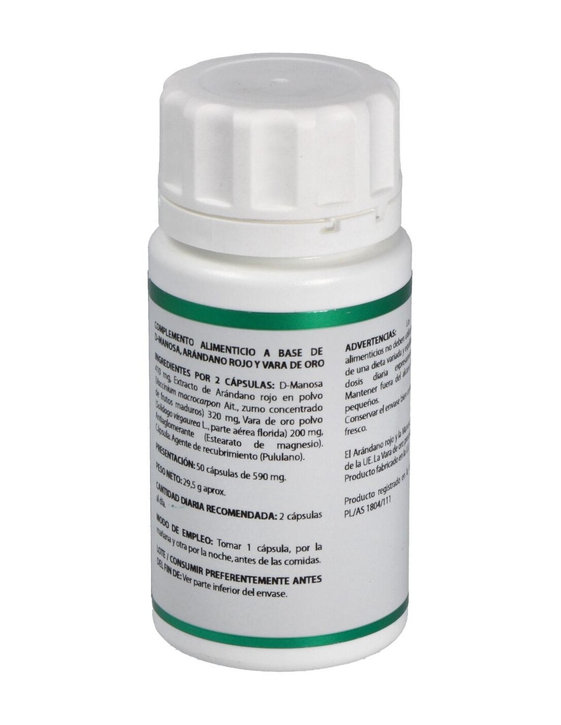 Complemento alimenticio a base de D-manosa y plantas. Tiene propiedades beneficiosas para tratar las afecciones urinarias. Apta para vegetarianos, diabéticos y pacientes con dietas restrictivas.
