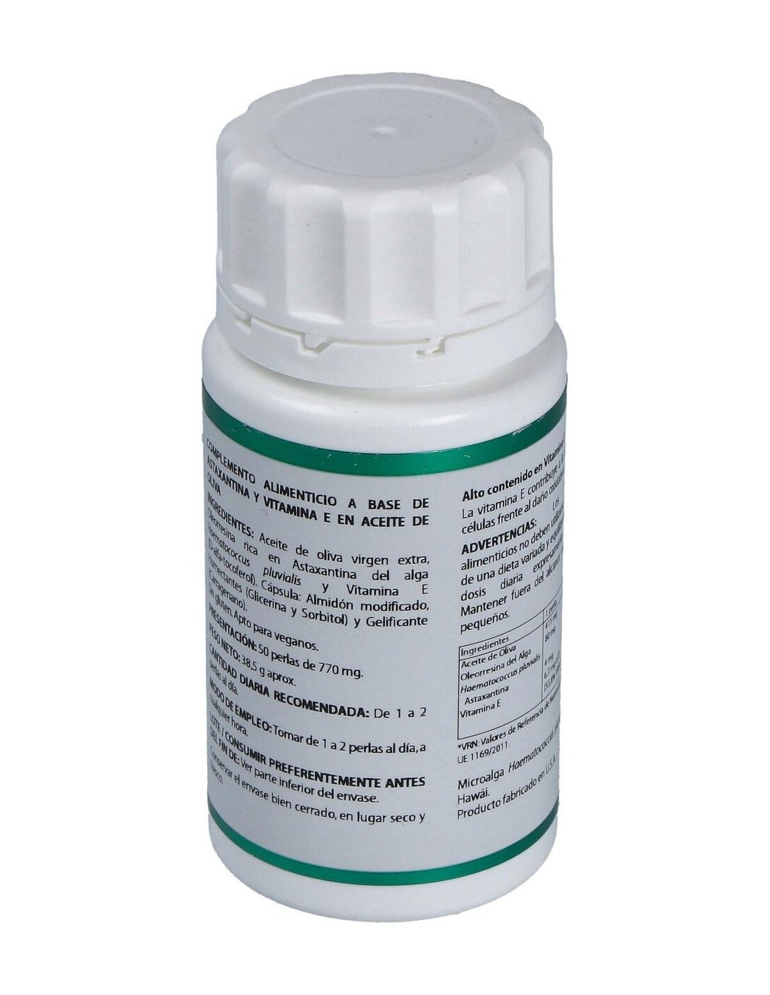MICROALGA HAEMATOCOCCUS PLUVIALIS, ASTAXANTINA, LUTEÍNA, BETACAROTENO, VITAMINA E NATURAL, ACEITE DE CÁRTAMO ALTO OLEICO.
