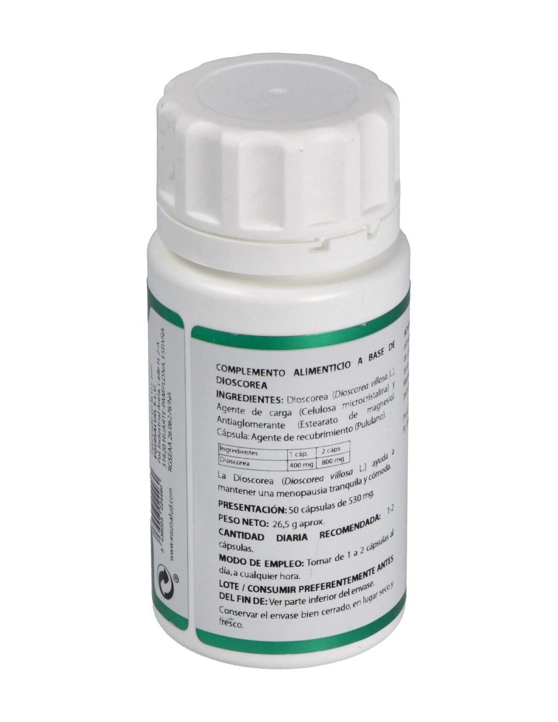 Extracto seco de dioscorea (Dioscorea villosa L., tubérculo, 16% diosgenina), 400 mg. Excipientes tecnológicos: celulosa micocristalina (agente de carga), c.s. y estearato de magnesio (antiaglomerante), c.s. Envoltura: polisacárido de origen vegetal (pululano)
