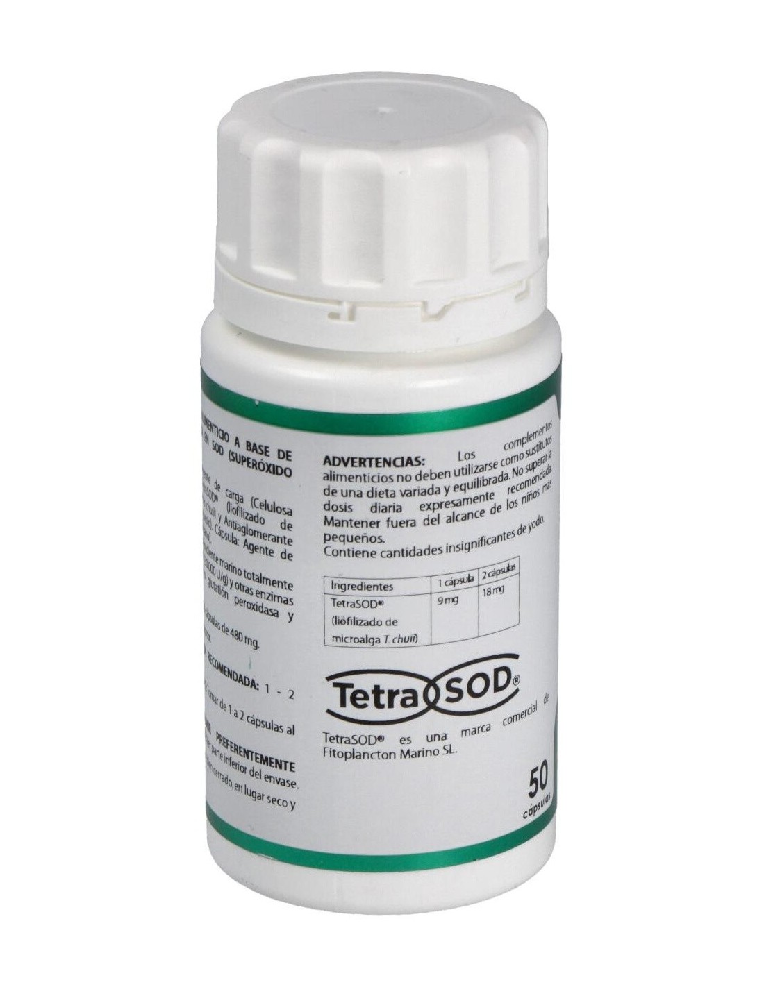 TETRASOD® (LIOFILIZADO DE MICROALGA TETRASELMIS CHUII, RICA EN SOD, ACTIVIDAD SUPERÓXIDO DISMUTASA > 30,000 IU/G), 9 MG