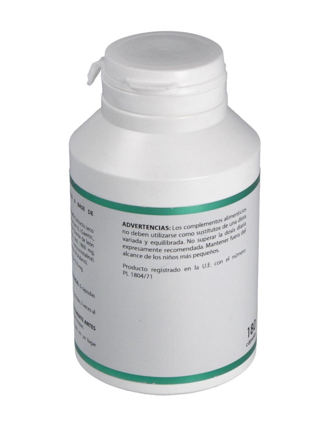 Cardo mariano extracto seco (Silybum marianum (L.) Gaertn.), 300 mg: diente de león extracto seco (Taraxacum officinale F.H. Wigg.), 300 mg. Envoltura: polisacárido de origen vegetal (pululano).