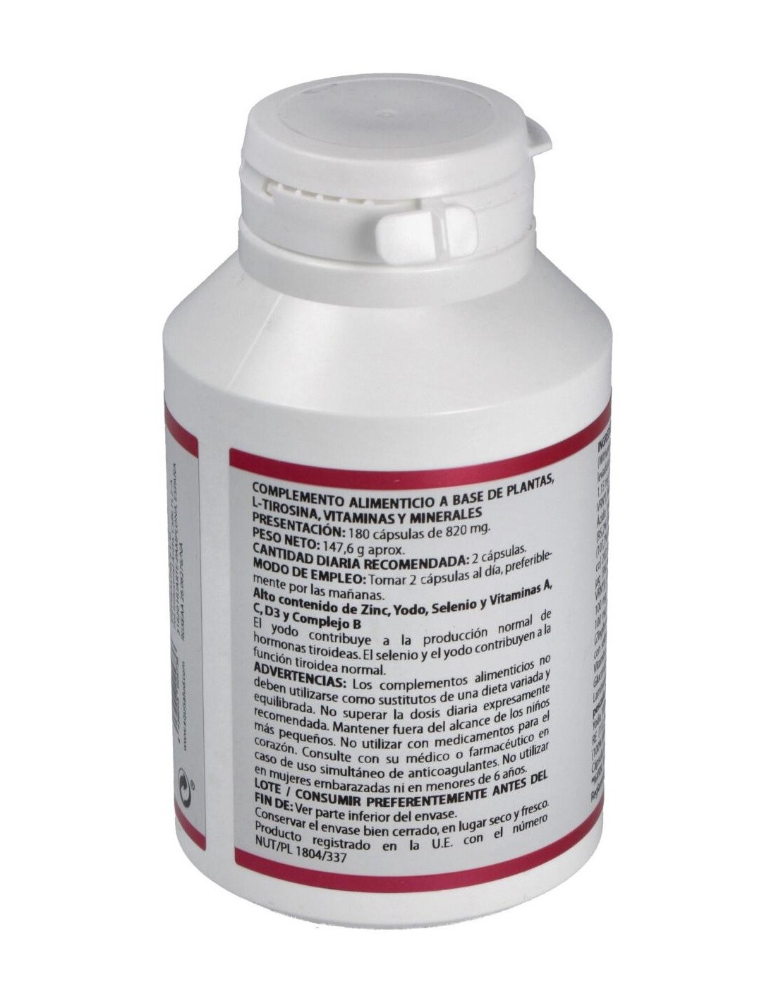 Holomega Hipotir 180 Cápsulas complemento alimenticio en cápsulas a base de Zinc, Yodo, Selenio y Vitaminas A, C, D3 y Complejo B, estimula la función de la tiroides, ideal para combatir la fatiga y cansancio y molestias en la piel. Además sus ingredientes mejoran nuestro estado de ánimo y potencian la pérdida de peso.