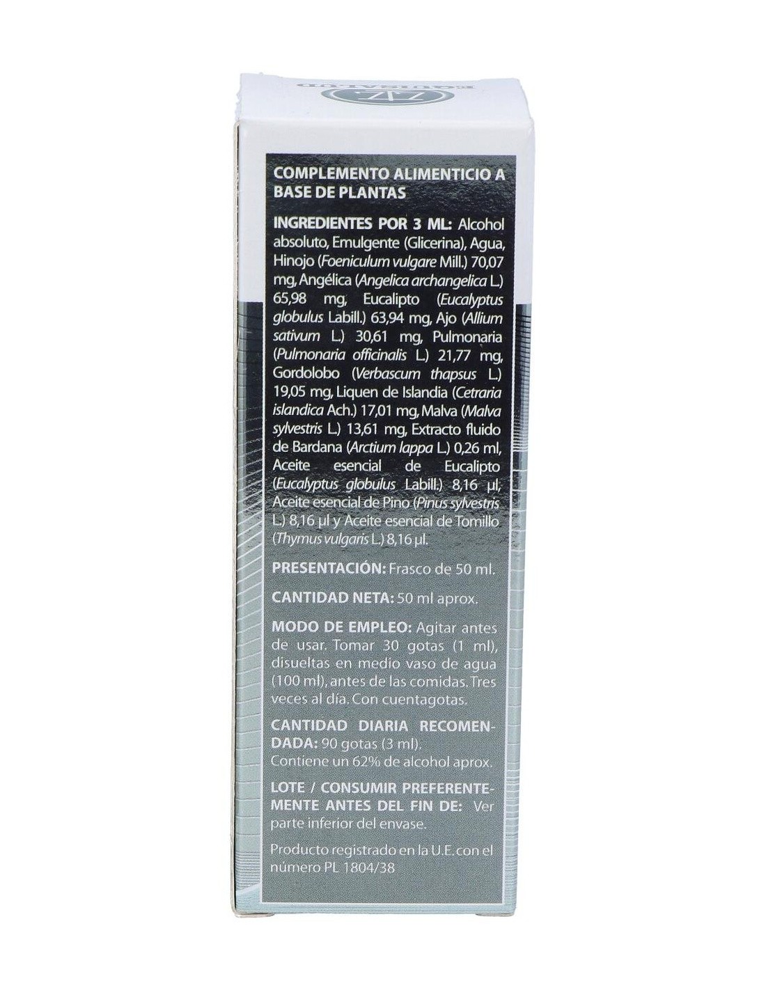 Bardana, Angélica, Hinojo, Gordolobo, Pulmonaria, Eucalipto, Malva, Liquen Islandia, Ajo, Tomillo, Pino.