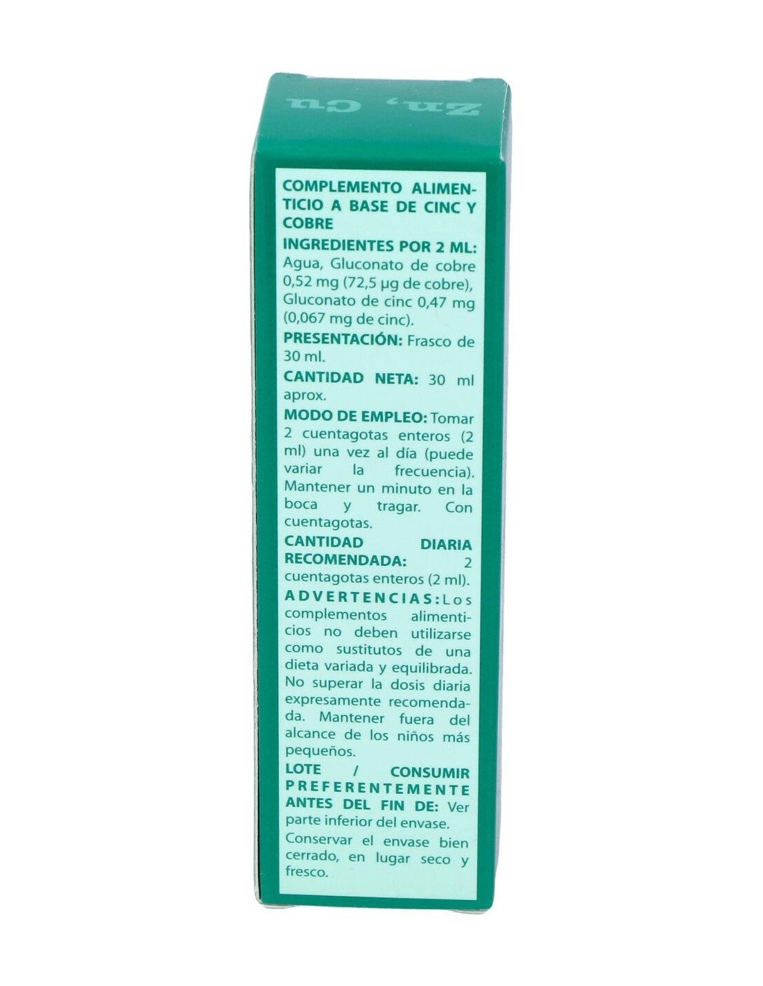 GLUCONATO DE COBRE. GLUCONATO DE ZINC.AGUA DESTILADA.
