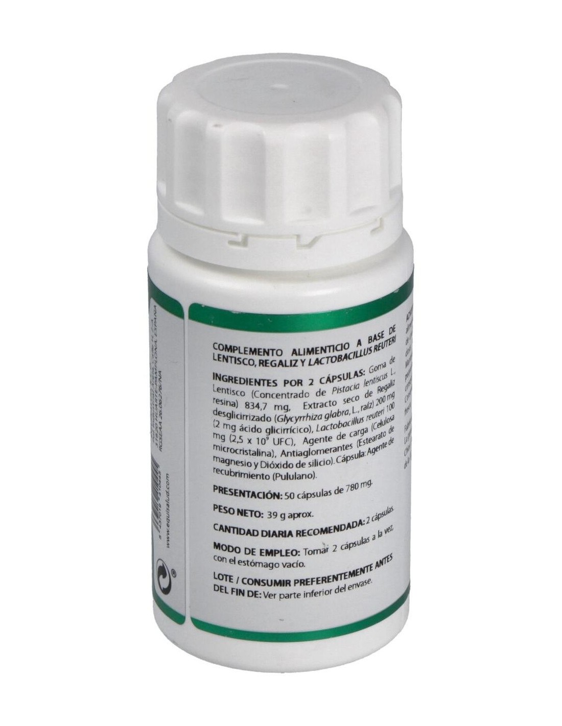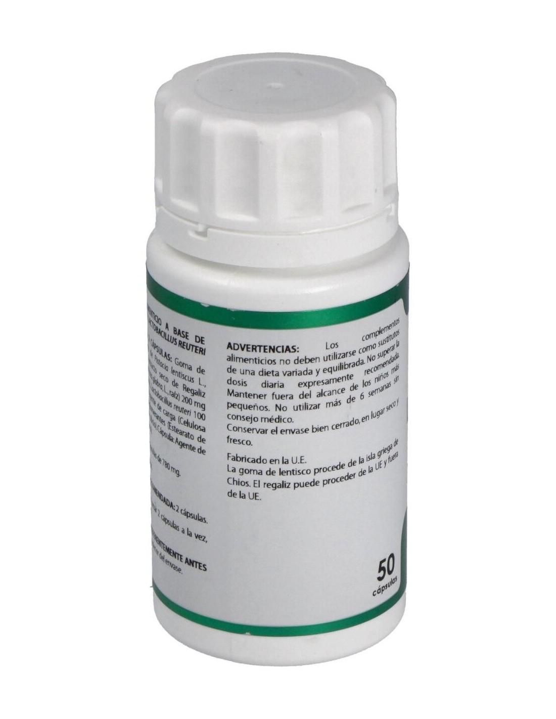 Complemento alimenticio a base de lentisco, regaliz y Lactobacillus reuteri. Apto para vegetarianos, diabéticos y pacientes con dietas restrictivas.
