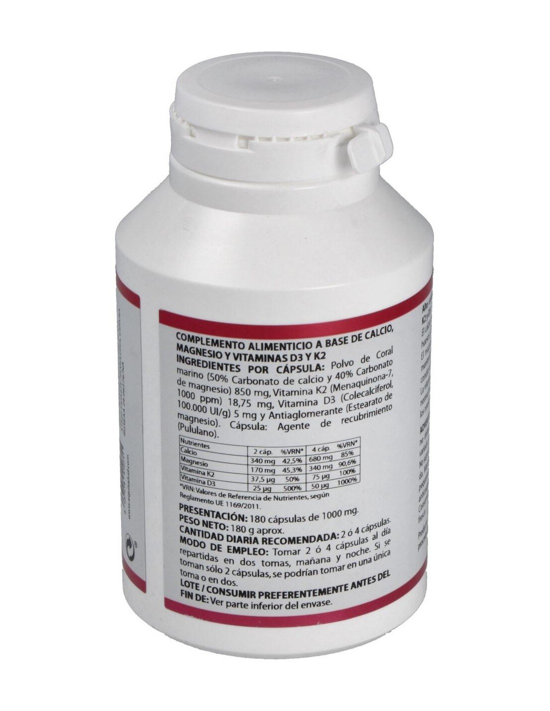 Coralsol® SMP 44* (coral marino polvo, 50% carbonato de calcio (40% calcio) y 40% carbonato de magnesio (25% magnesio)), 850 mg: Menaquin Gold (vitamina K2 (menaquinona-7) 1.000 ppm), 18,75 mg: vitamina D3 (colecalciferol, 100.000 UI/g), 5 mg. Excipiente tecnológico: estearato de magnesio (antiaglomerante), c.s. Envoltura: polisacárido de origen vegetal (pululano)