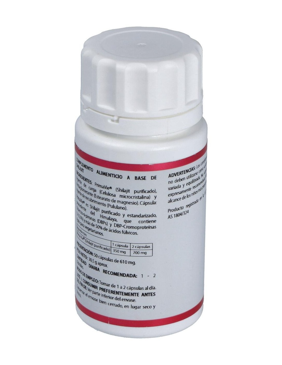 PRIMAVIE® (SHILAJIT PURIFICADO), EXCIPIENTES TECNOLÓGICOS: CELULOSA MICROCRISTALINA (AGENTE DE CARGA), ESTEARATO DE MAGNESIO (ANTIAGLOMERANTE).