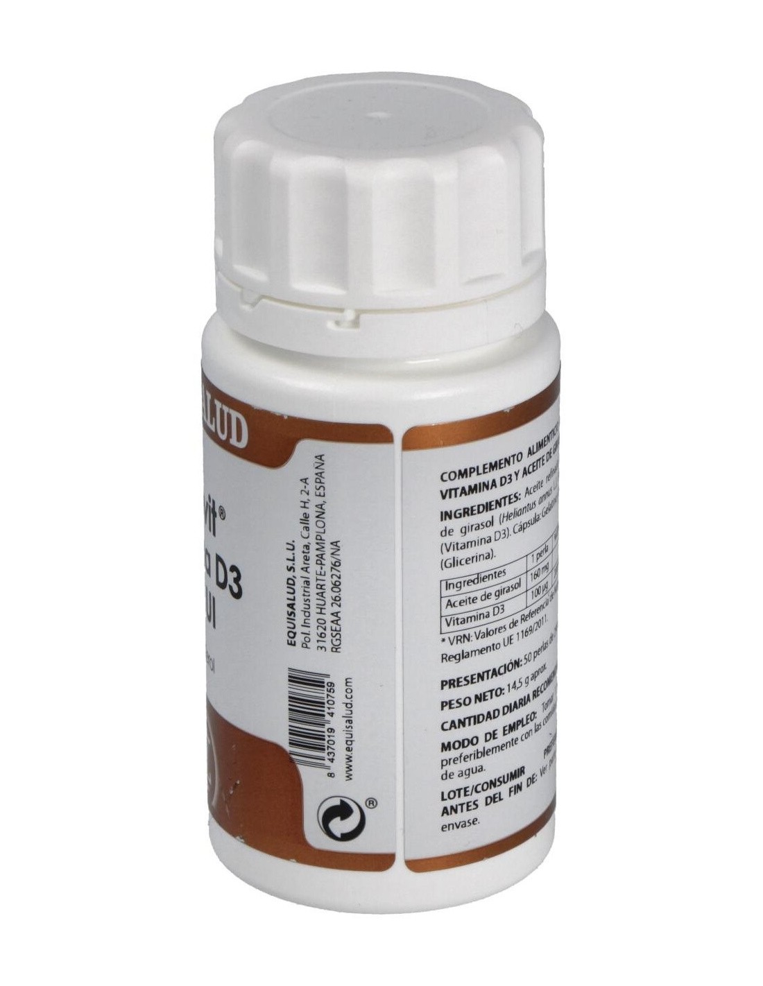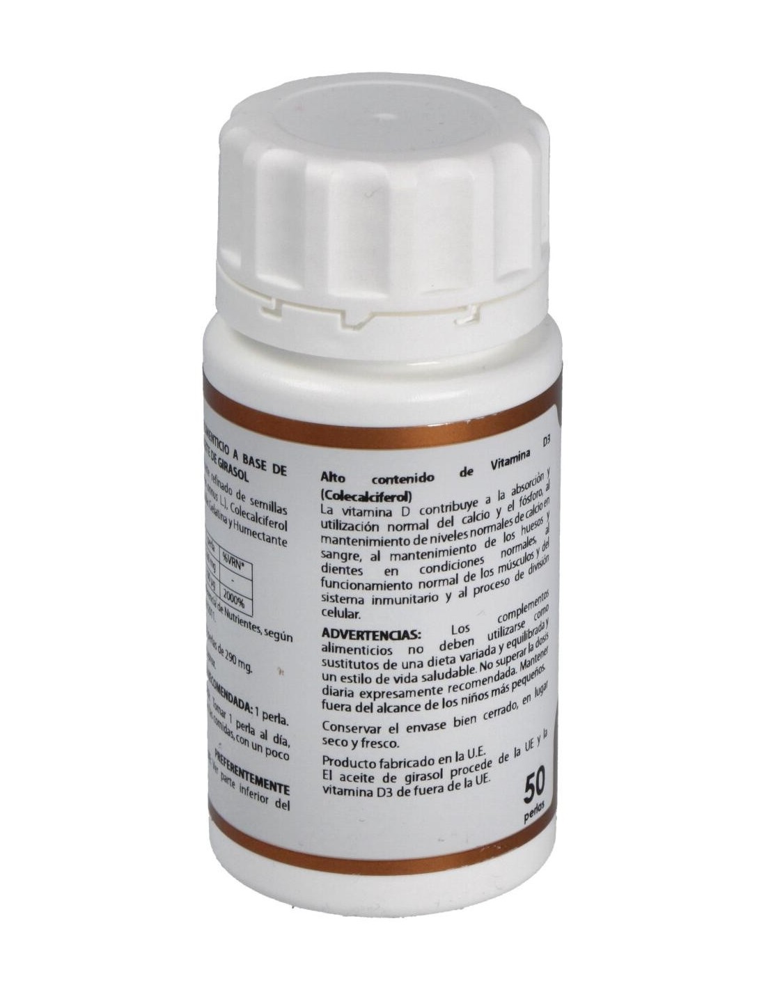 Complemento alimenticio a base de vitamina D3 y aceite de girasol. La vitamina D contribuye a la absorción y utilización normal del calcio y el fósforo, al mantenimiento de niveles normales de calcio en sangre, al mantenimiento de los huesos y dientes en condiciones normales, al funcionamiento normal de los músculos y del sistema inmunitario y al proceso de división celular.