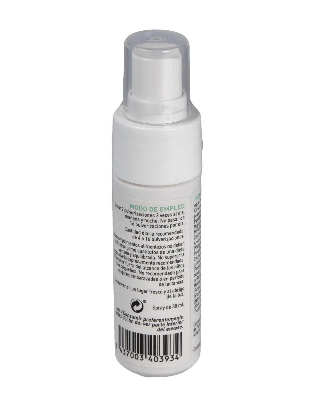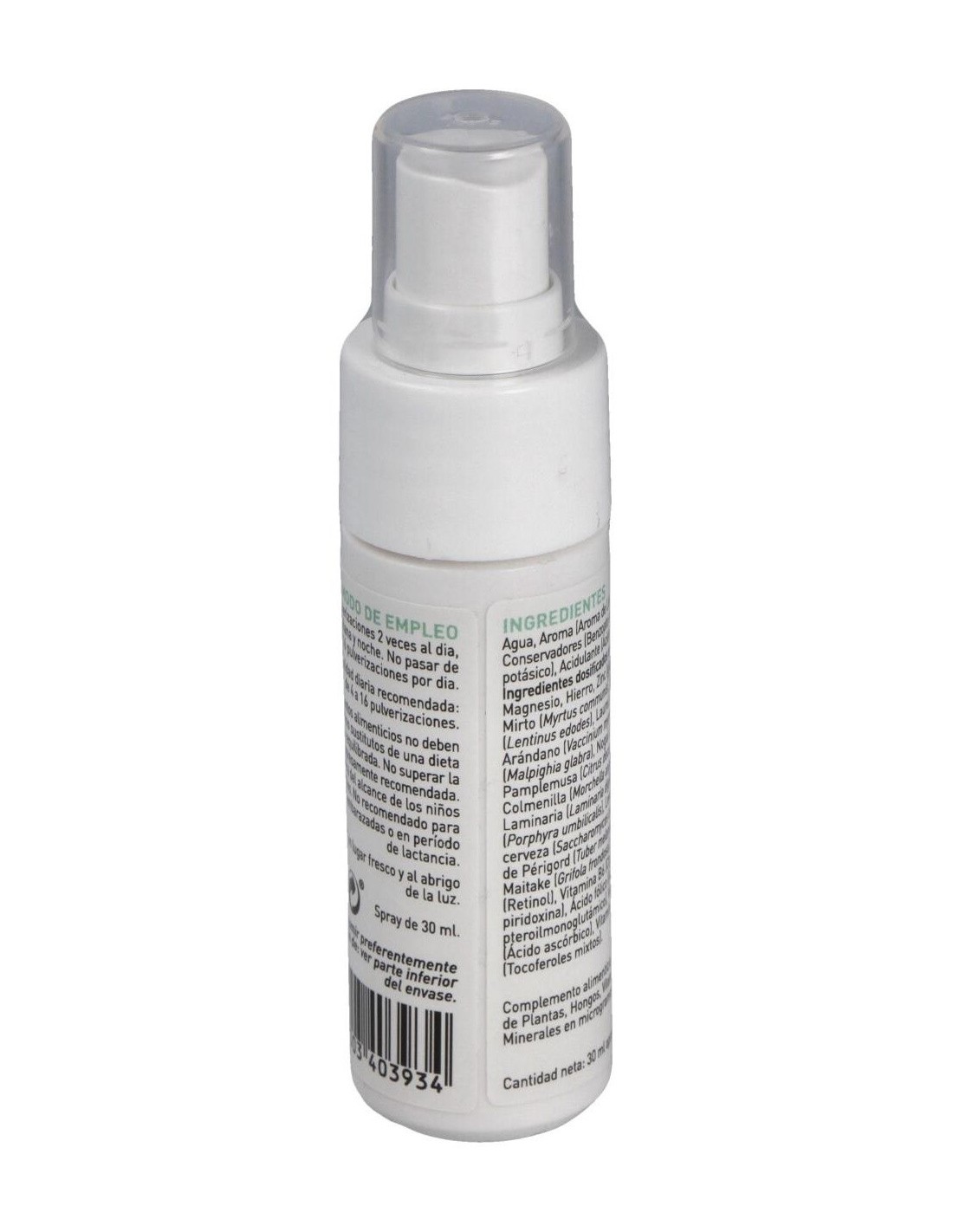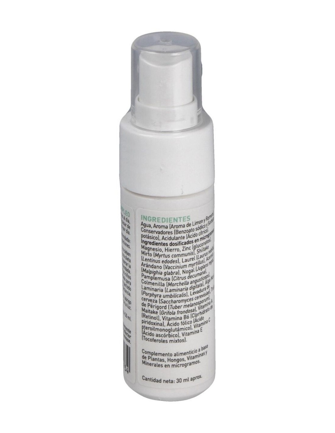 Complemento alimenticio en spray que está especialmente ideado para ayudar a apoyar a las defensas naturales con micronutrientes de calidad, como por ejemplo cuando se acerca el invierno, durante epidemias o periodos de estrés, fatiga y vulnerabilidad o personas con deficiencias inmines, gracias a su compuesto elaborado a base de hierbas, setas, vitaminas y minerales en microgramos. No está recomendado para mujeres embarazadas o lactantes.
