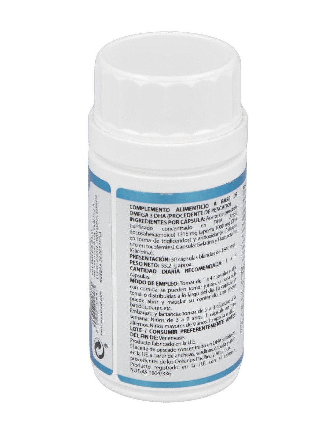 ACEITE DE PESCADO PURIFICADO CONCENTRADO EN DHA (ÁCIDO DOCOSAHEXAENOICO), 1.316 MG (APORTA 1.000 MG DHA EN FORMA DE TRIGLICÉRIDOS) Y ANTIOXIDANTE (EXTRACTO RICO EN TOCOFEROLES). ENVOLTURA: CÁPSULA DE GELATINA BLANDA. CONTIENE: GELATINA (AGENTE DE RECUBRIMIENTO), GLICERINA (HUMECTANTE) Y AGUA.