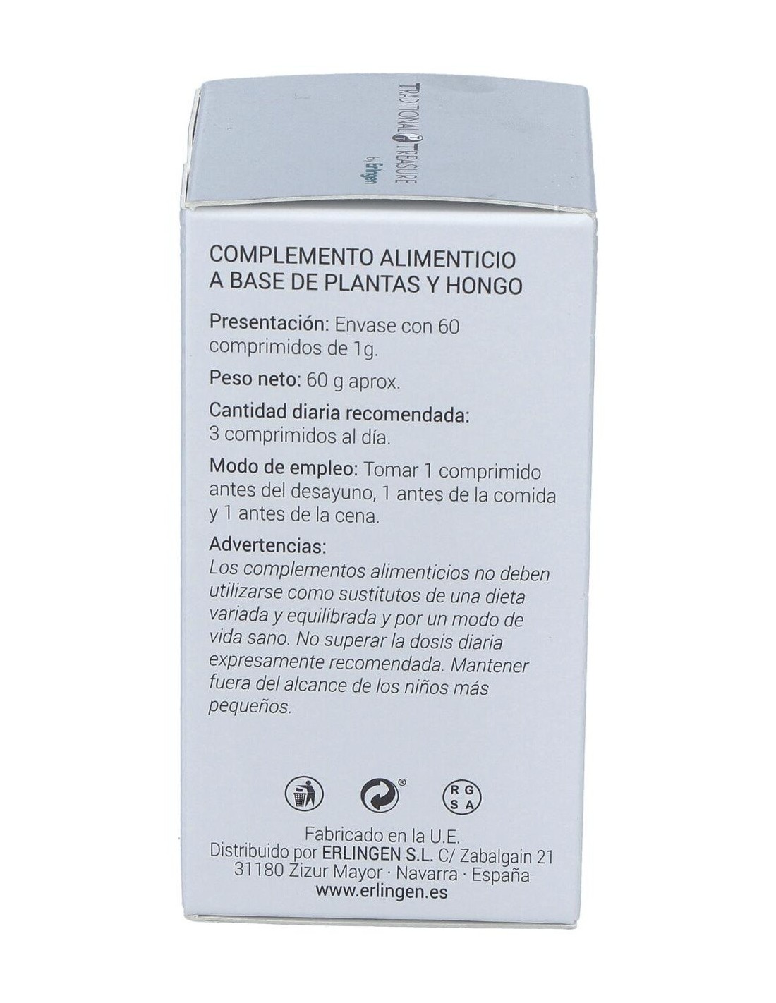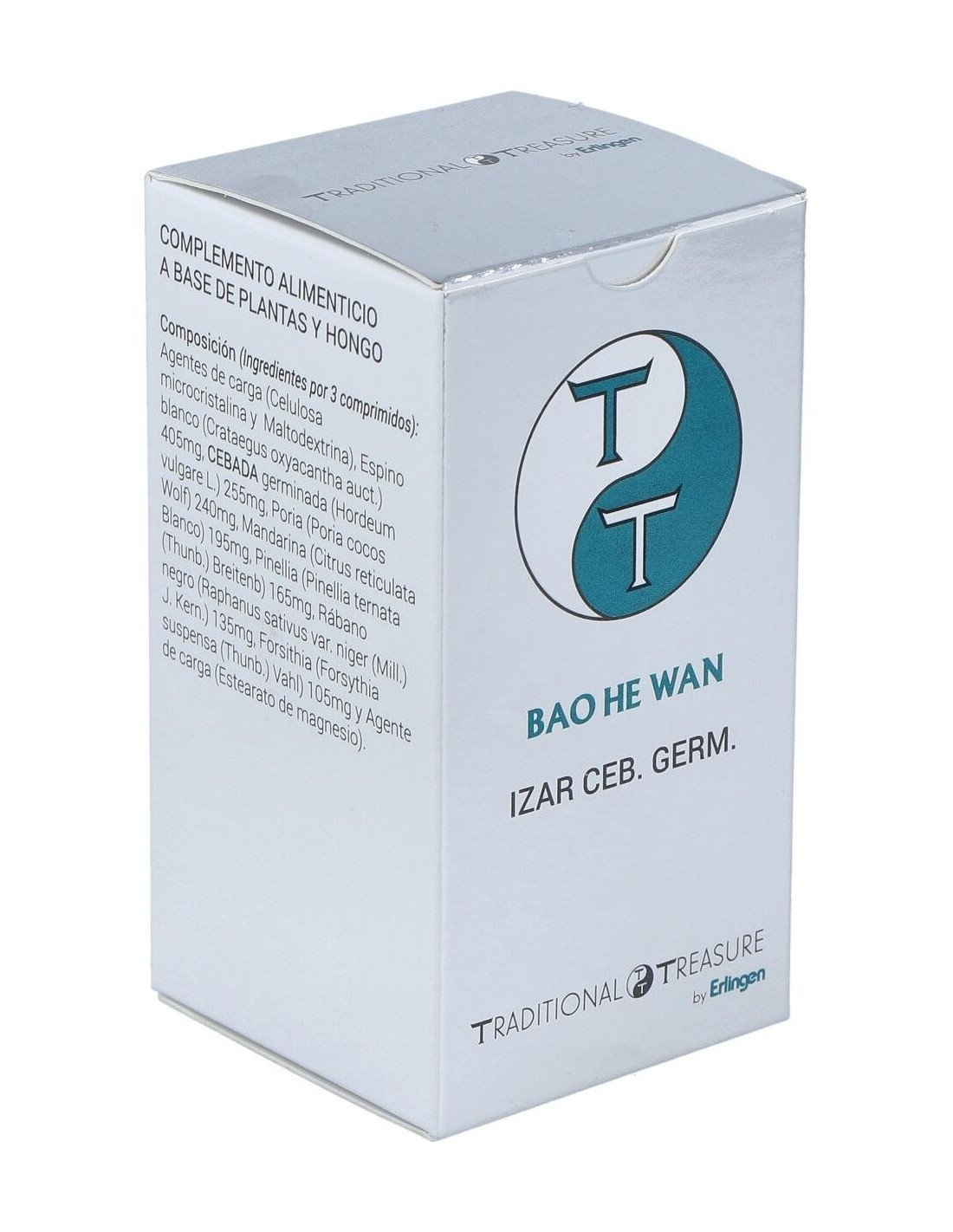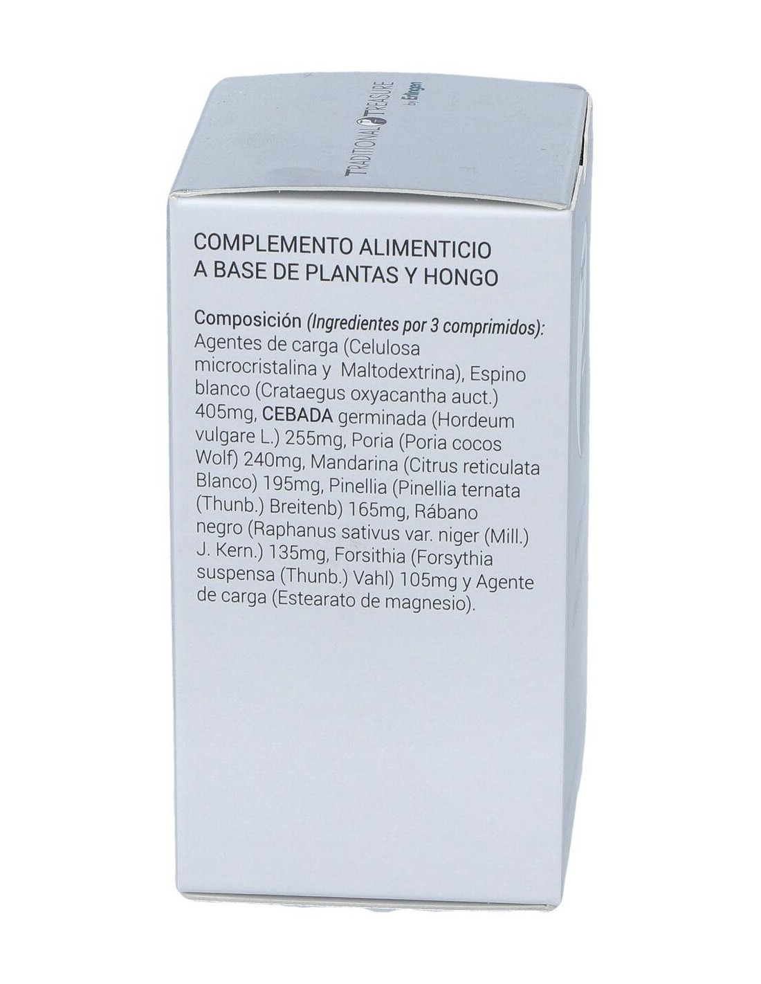 Agentes de carga (Celulosa microcristalina y Maltodextrina), Espino blanco (Crataegus oxyacantha auct.) 405 mg, Cebada germinada (Hordeum vulgare L.) 255 mg, Poria (Poria cocos Wolf) 240 mg, Mandarina (Citrus reticulata Blanco) 195mg, Rábano negro (Raphanus sativus var. niger (Mill.) J. Kern.) 135 mg, Forsithia (Forsythia suspensa (Thunb.) Vahl) 105 mg, Naranja amarga (Citrus aurantium L.) 90 mg y Perilla (Perilla frutescens (L.) Britton) 75 mg y Agente de carga (Estearato de magnesio).