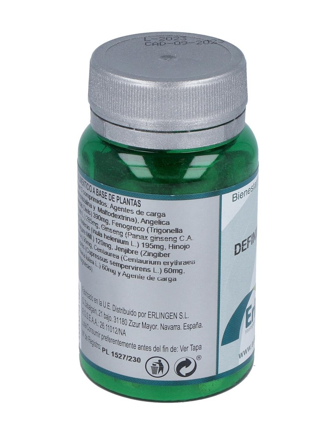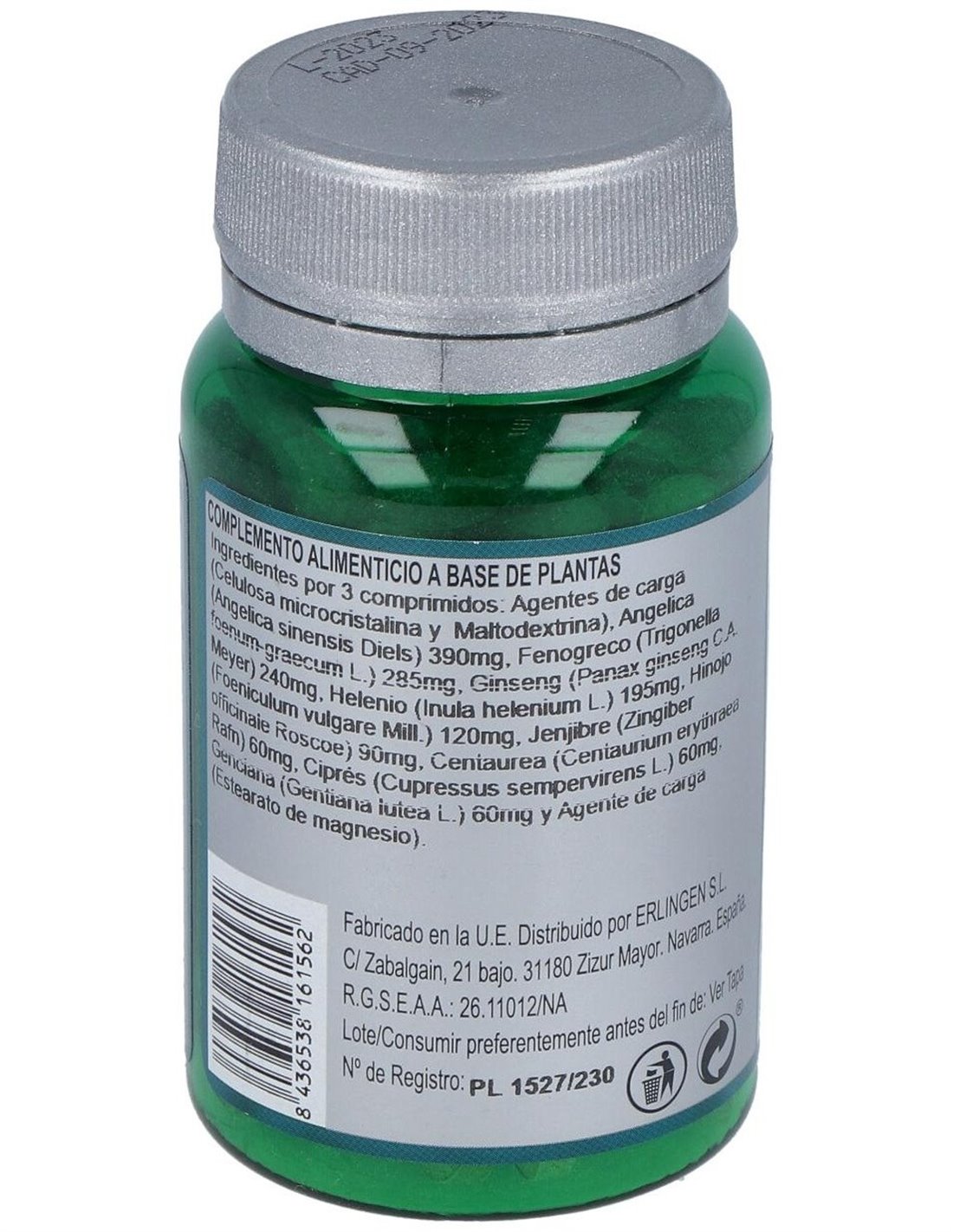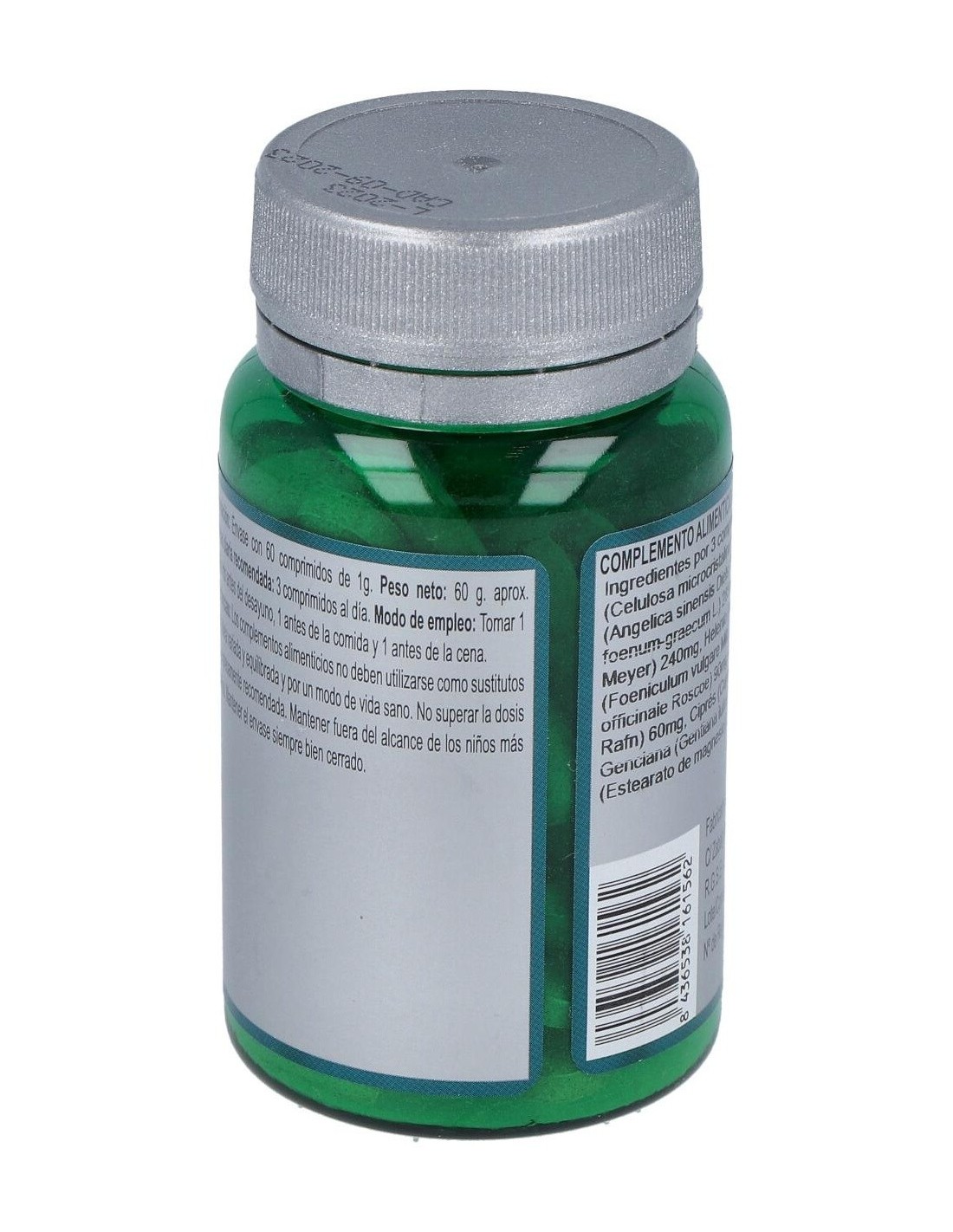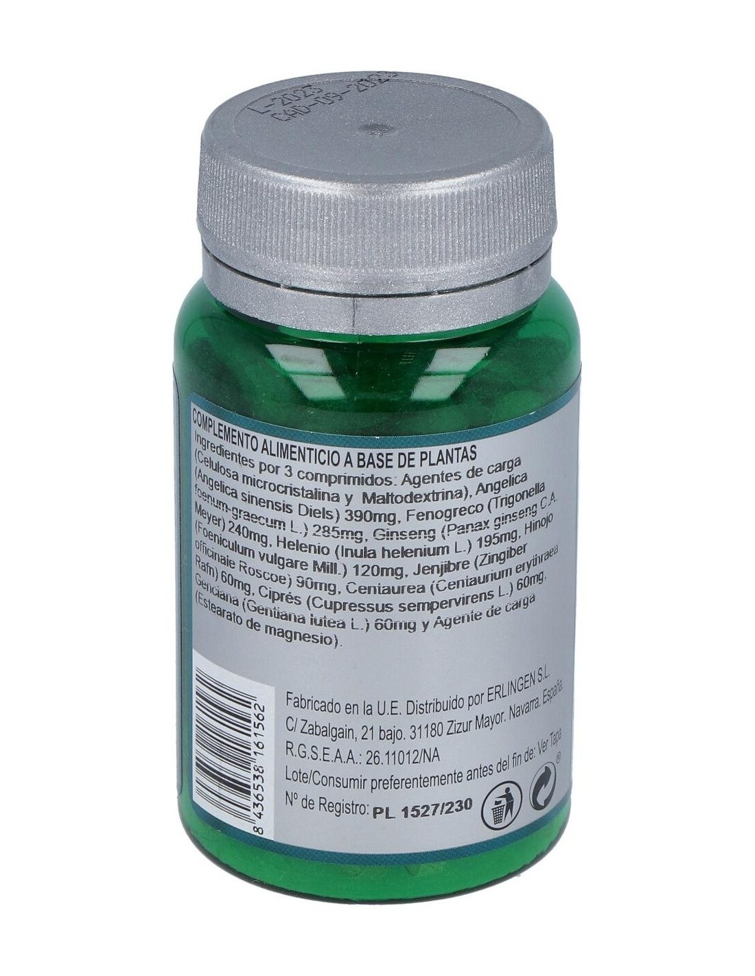 Angélica (Angelica Sinensis Diels), Fenogreco (Trigonella Foenum-Graecum L.), Ginseng (Panax Ginseng C.A. Meyer), Helenio (Inula Helenium L.), Hinojo (Foeniculum Vulgare Miller), Jengibre (Zingiber Officinale Roscoe), Centaurium (Erythraea Centaurium), Ciprés (Cupressus Sempervirens), Genciana (Gentiana Lutea L.) Y Agentes de Carga (Celulosa Microcristalina, Maltodextrina Y Estearato de Magnesio).