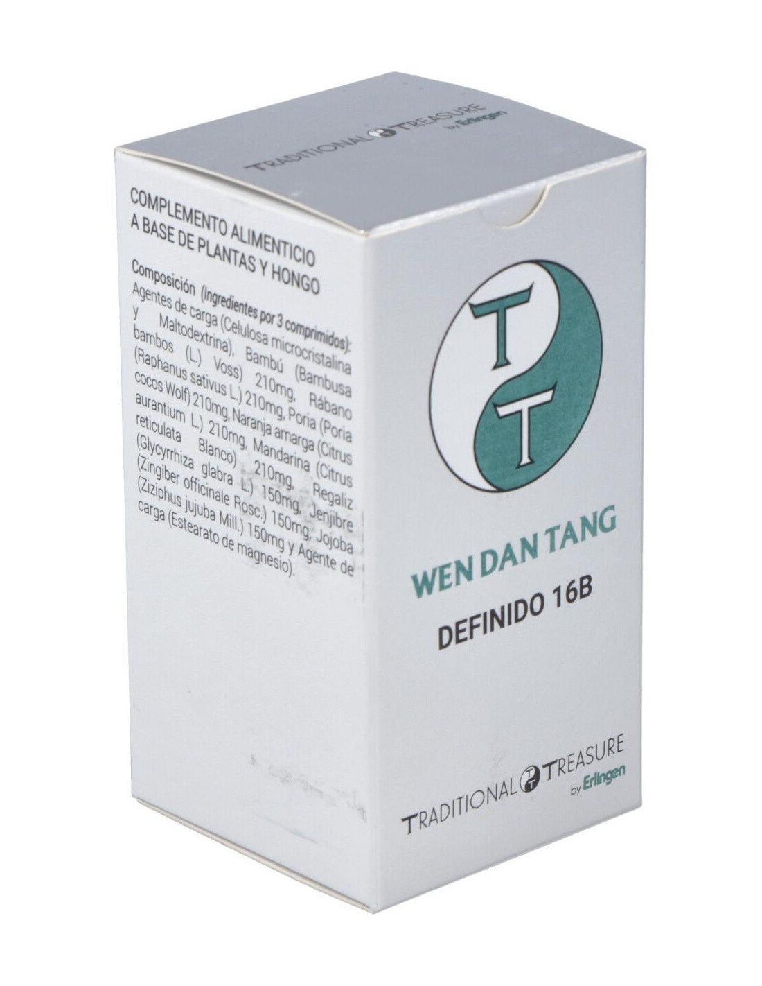 Agentes de carga (Celulosa microcristalina y Maltodextrina), Bambú (Bambusa bambos (L.) Voss) 210 mg, Rábano (Raphanus sativus L.) 210 mg, Poria (Poria cocos Wolf) 210 mg, Naranja amarga (Citrus aurantium L.) 210 mg, Mandarina (Citrus reticulata Blanco) 210 mg, Regaliz (Glycyrrhiza glabra L.) 150 mg, Jengibre (Zingiber officinale Rosc.) 150 mg, Jojoba (Ziziphus jujuba Mill.) 150 mg y Agente de carga (Estearato de magnesio).