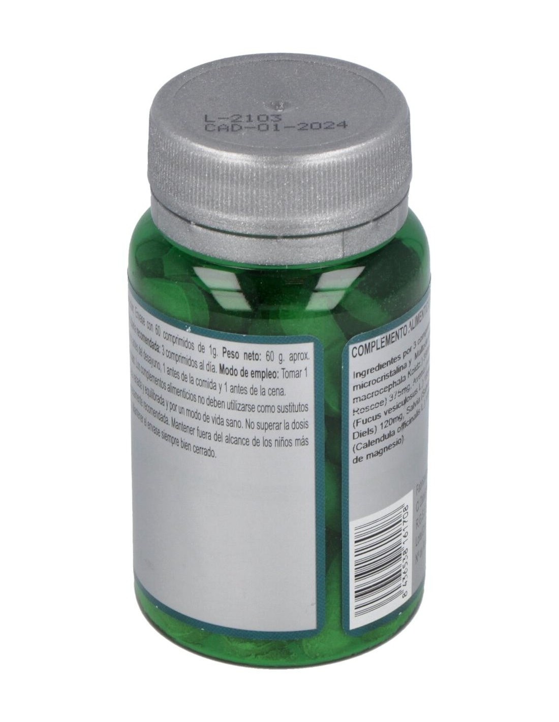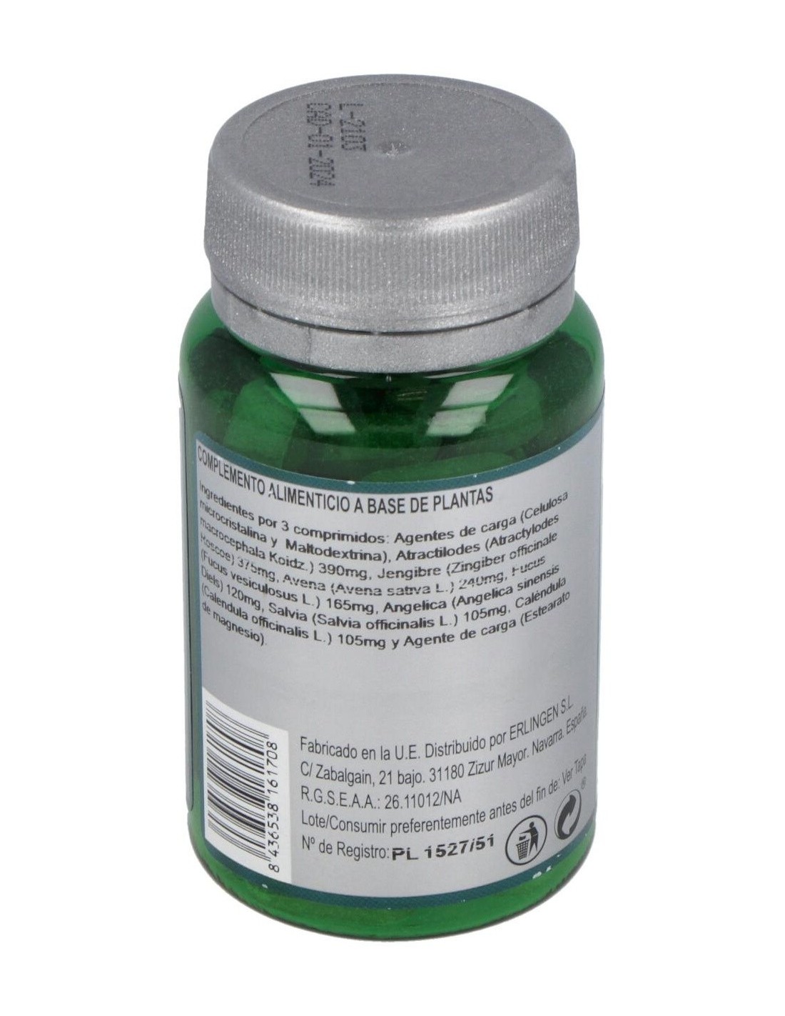 Atractilodes (Atractylodes macrocephala Koidz.), Jengibre (Zingiber officinale Roscoe), Avena (Avena sativa L.), Fucus (Fucus vesiculosus L.), Angélica (Angelica sinensis Diels), Salvia (Salvia officinalis L.), Caléndula (Calendula officinalis L.) y Agentes de carga (Celulosa microcristalina, Maltodextrina y Estearato de magnesio).