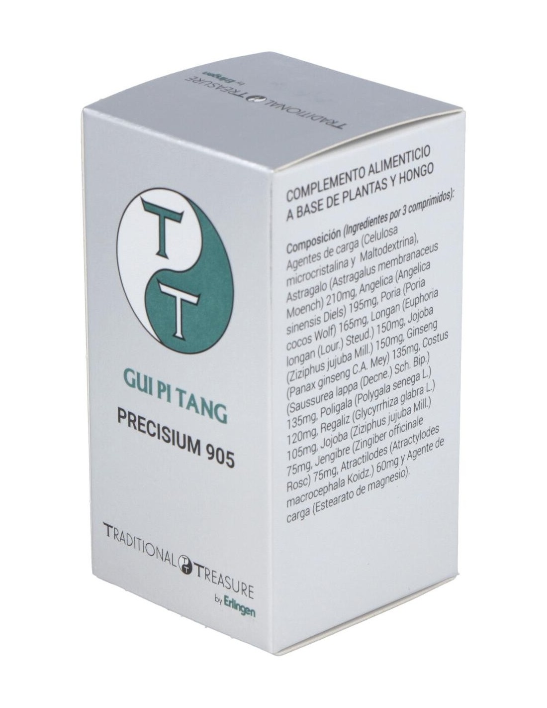 Ingredientes Por 3 Comprimidos: Agentes de Carga (Celulosa Microcristalina Y Maltodextrina), Astragalo (Astragalus Membranaceus Moench) 210mg, Angélica (Angelica Sinensis Diels) 195mg, Poria (Poria Cocos Wolf) 165mg, Longan (Euphoria Longan (Lour.) Steud.) 150mg, Jojoba (Ziziphus Jujuba Mill.) 150mg, Ginseng (Panax Ginseng C.A. Mey) 135mg, Costus (Saussurea Lappa (Decne.) Sch. Bip.) 135mg, Poligala (Polygala Senega L.) 120mg, Regaliz (Glycyrrhiza Glabra L.) 105mg, Jojoba (Ziziphus Jujuba Mill.) 75mg, Jengibre (Zingiber Officinale Rosc) 75mg, Atractilodes (Atractylodes Macrocephala Koidz.) 60mg Y Agente de Carga (Estearato de Magnesio).