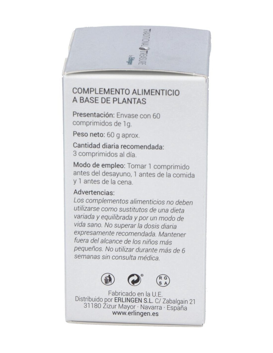 Tomar 1 comprimido antes del desayuno, 1 antes de la comida y 1 antes de la cena. Los complementos alimenticios deben tomarse dentro de una dieta variada y equilibrada y como parte de un estilo de vida activo.