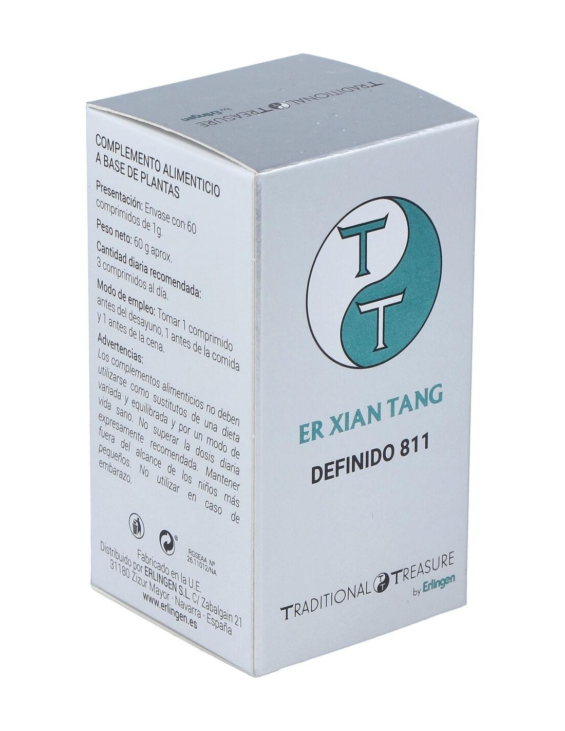 Agentes de carga (Celulosa microcristalina y Maltodextrina), Morinda (Morinda officinalis F.C. How) 360mg, Angelica (Angelica sinensis (Oliv.) Diels) 360mg, Remania (Rehmannia glutinosa (Gaertn.) DC.) 210mg, Goji (Lycium barbarum L.) 210mg, Phellodendro (Phellodendron amurense Rupr.) 180mg, Anemarrena (Anemarrhena asphodeloides Bunge) 180mg y Agente de carga (Estearato de magnesio).
