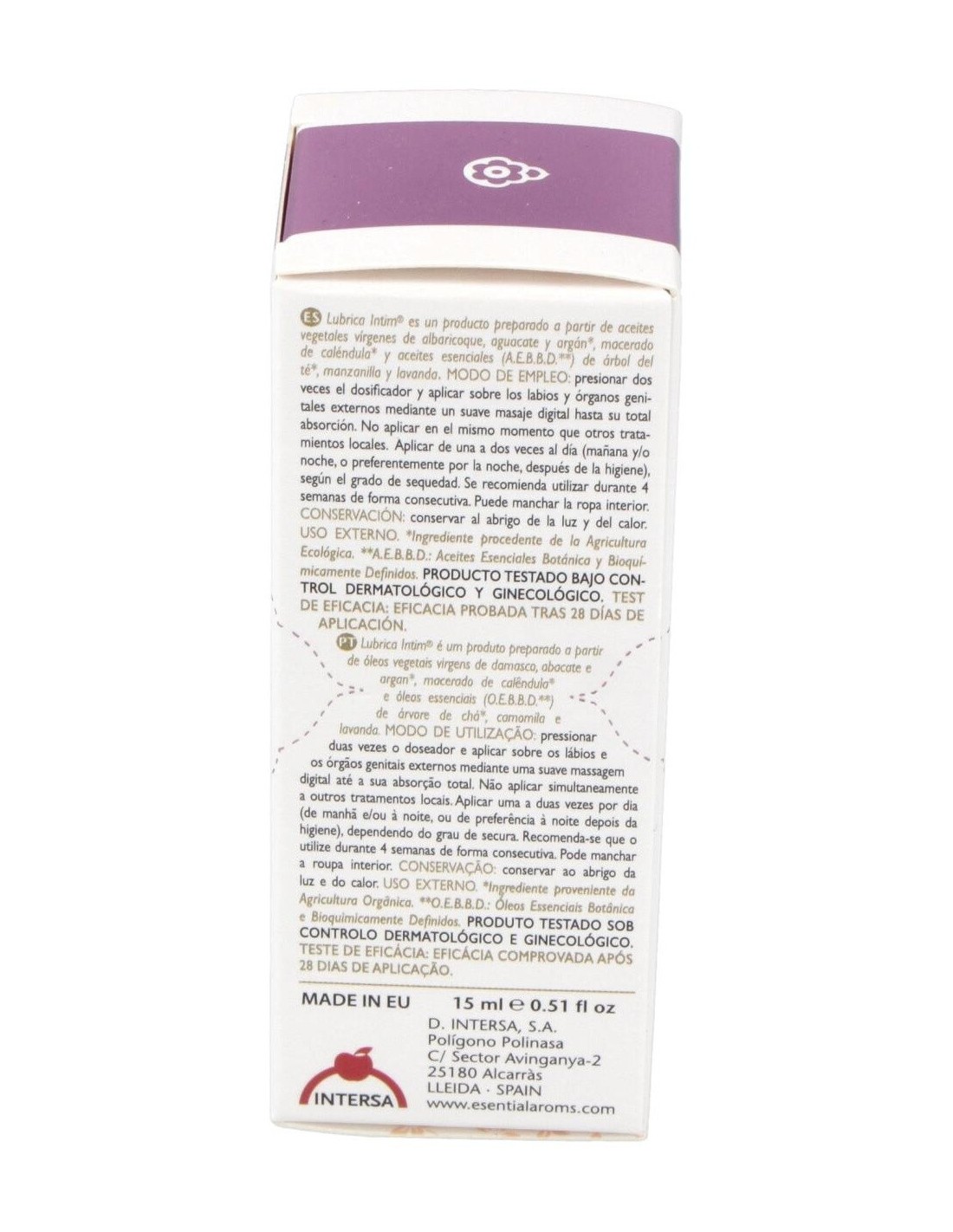 Aceite hidratante íntimo. Ayuda a lubricar la zona genital sin causar irritaciones. Indicado para mujeres con sequedad vaginal. Ayuda a mejorar la capacidad de lubricación, con un efecto que calma los picores y brinda confort a la zona vaginal. Formulado con aceites vegetales vírgenes de albaricoque, aguacate,argán, caléndula, de árbol del té, manzanilla y lavanda.
