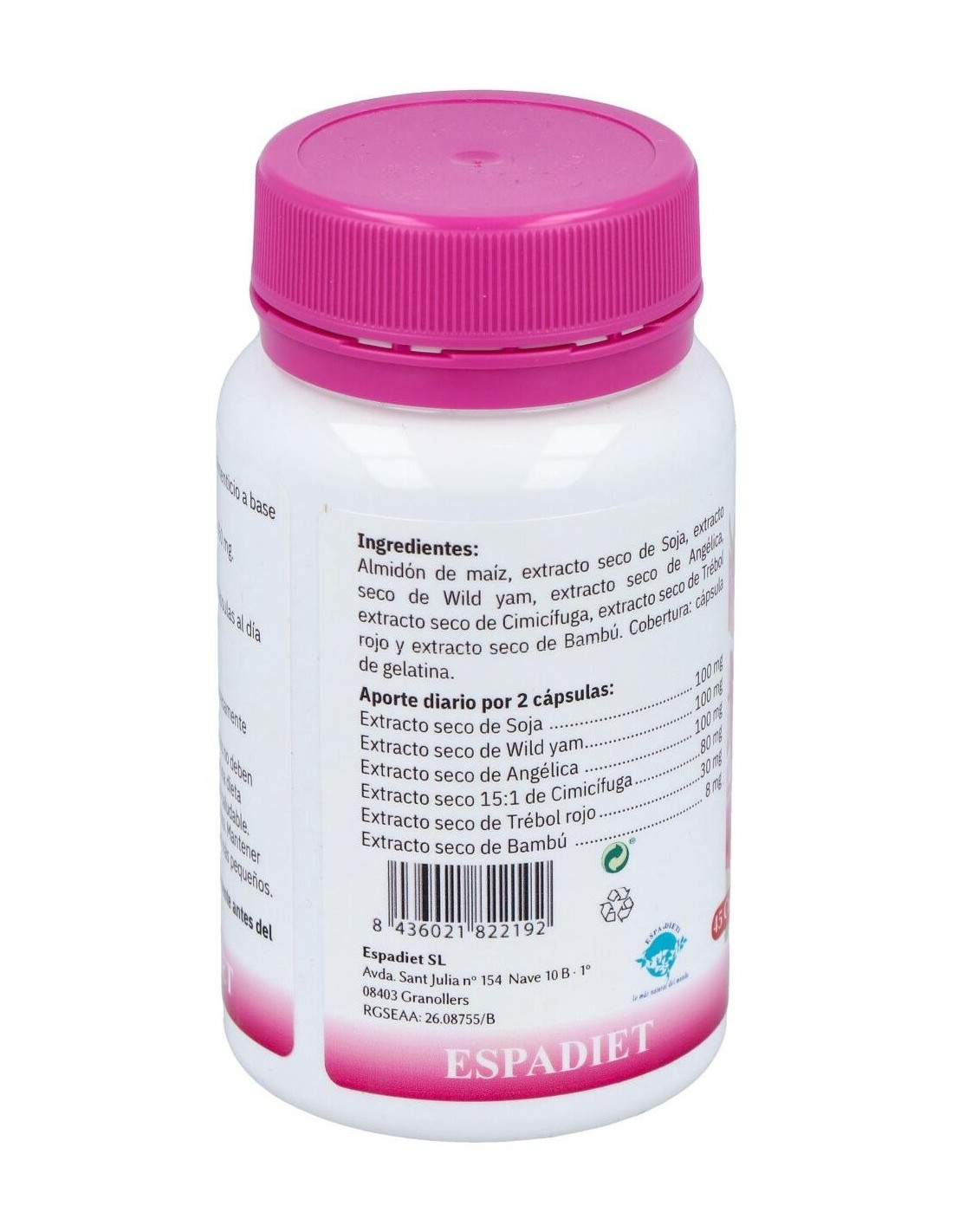 Complemento alimenticio en forma de cápsulas, elaborado a base de extractos de plantas, que está indicado para contribuir a mejorar los síntomas que los cambios hormonales producen durante la menopausia, menstruación o embarazo. Contiene, entre otros, extractos de soja, que es rico en isoflavonas, muy recomendadas para su consumo antes, durante y después de la menopausia, ya que ayuda a aliviar trastornos como el insomnio, irritabilidad, fatiga o alteración de la vida sexual.
