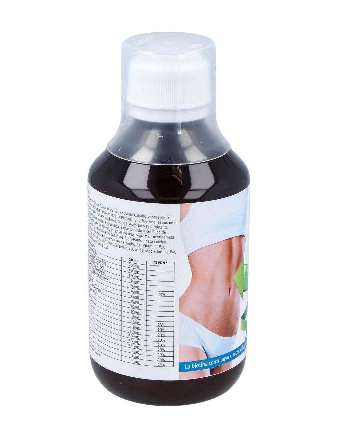Agua, extractos concentrados de fucus, ortosifón y cola de caballo, aroma de té verde y limón, extractos concentrado de pilosella y café verde, sorbato potásico, ácido L-ascórbico (vitamina C), bormelaína 1200 GDU/g de actividad protelítica, goma xantana, extracto hidroalcohólico de fresno, extractos concentrados de abedul, estigmas de maíz y grama, nicotinamida, acetato DL-alfa tocoferilo, D-pantotenato cálcico, sucralosa, rivoflavina, clorhidrato de piridoxina, clorhidrato de tiamina, ácido fólico, D-biotina, cianocobalamina.