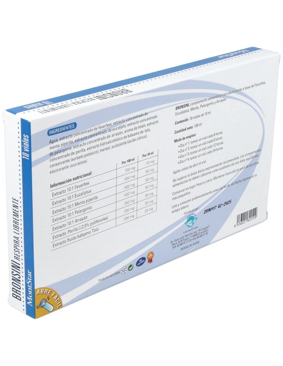 Viales a base de extractos de plantas como el eucalipto, que contribuye a mantener las vías respiratorias en condiciones normales.
