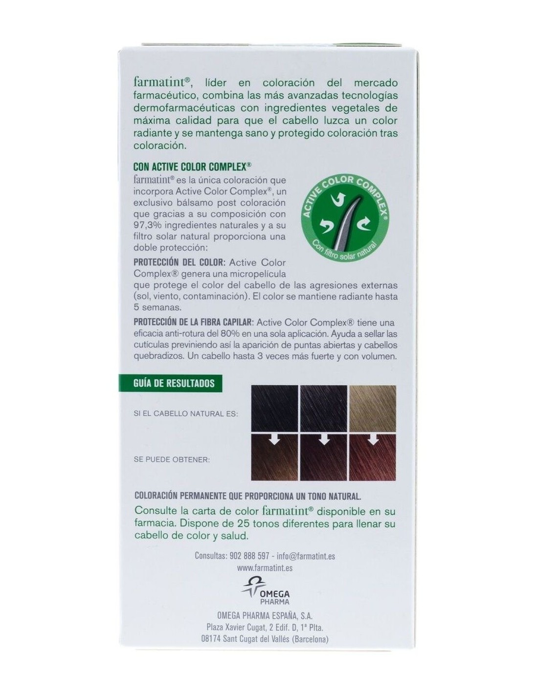 Coloración permanente capaz de cubrir totalmente los cabellos blancos, respetando la salud del cabello. Sus ingredientes vegetales activos consiguen una máxima protección y nutrición capilar durante el proceso de coloración, reestructurando e hidratando el cabello en profundidad. Contiene: 1 bote de tinte 60 ml, 1 bote aplicador con revelador de color 60 ml, guantes protectores, folleto informativo, 2 active color complex de 15 ml.