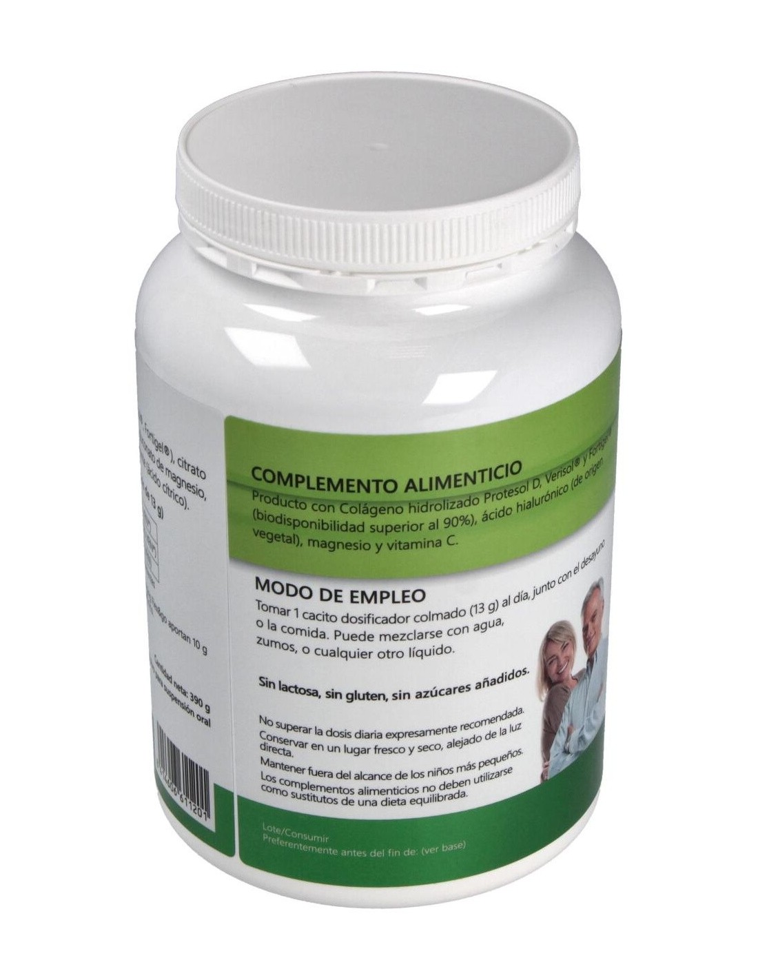 Reúne una depurada mezcla de los mejores colágenos existentes en el mercado: Péptidos de Colágeno Bioactivos® (Verisol® y Fortigel®) y Protesol® D. Mejora la movilidad articular, la flexibilidad y lubricación de las articulaciones favoreciendo la conservación del cartílago. Retrasa los signos de envejecimiento y aumenta la elasticidad de la piel.