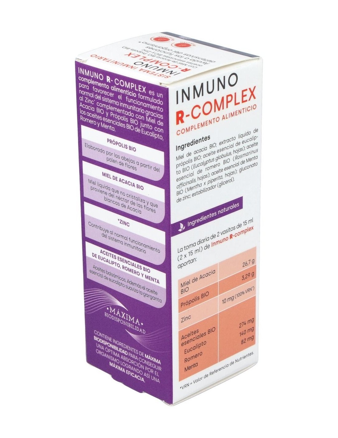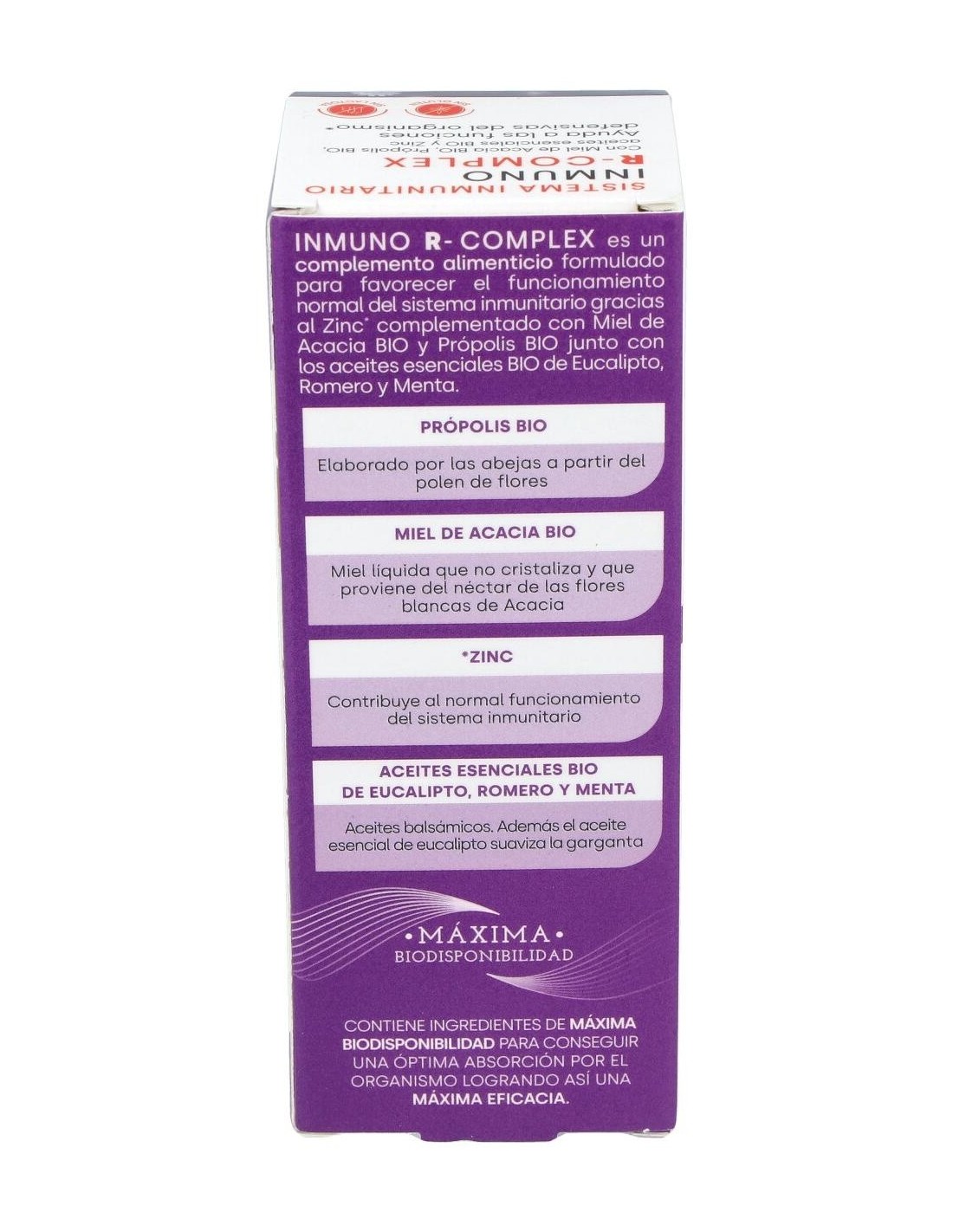 Miel de acacia BIO, extracto líquido de própolis, aceite esencial de eucalipto BIO (hojas), aceite esencial de romero BIO (hojas), aceite esencial de menta BIO (hojas), gluconato de zinc, estabilizador (glicerol).