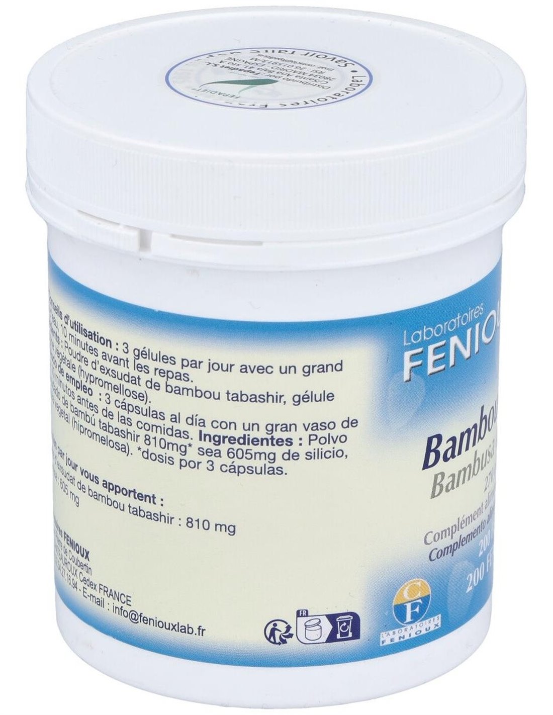 Bambú tabashir (810 mg), Silicio (605 mg).