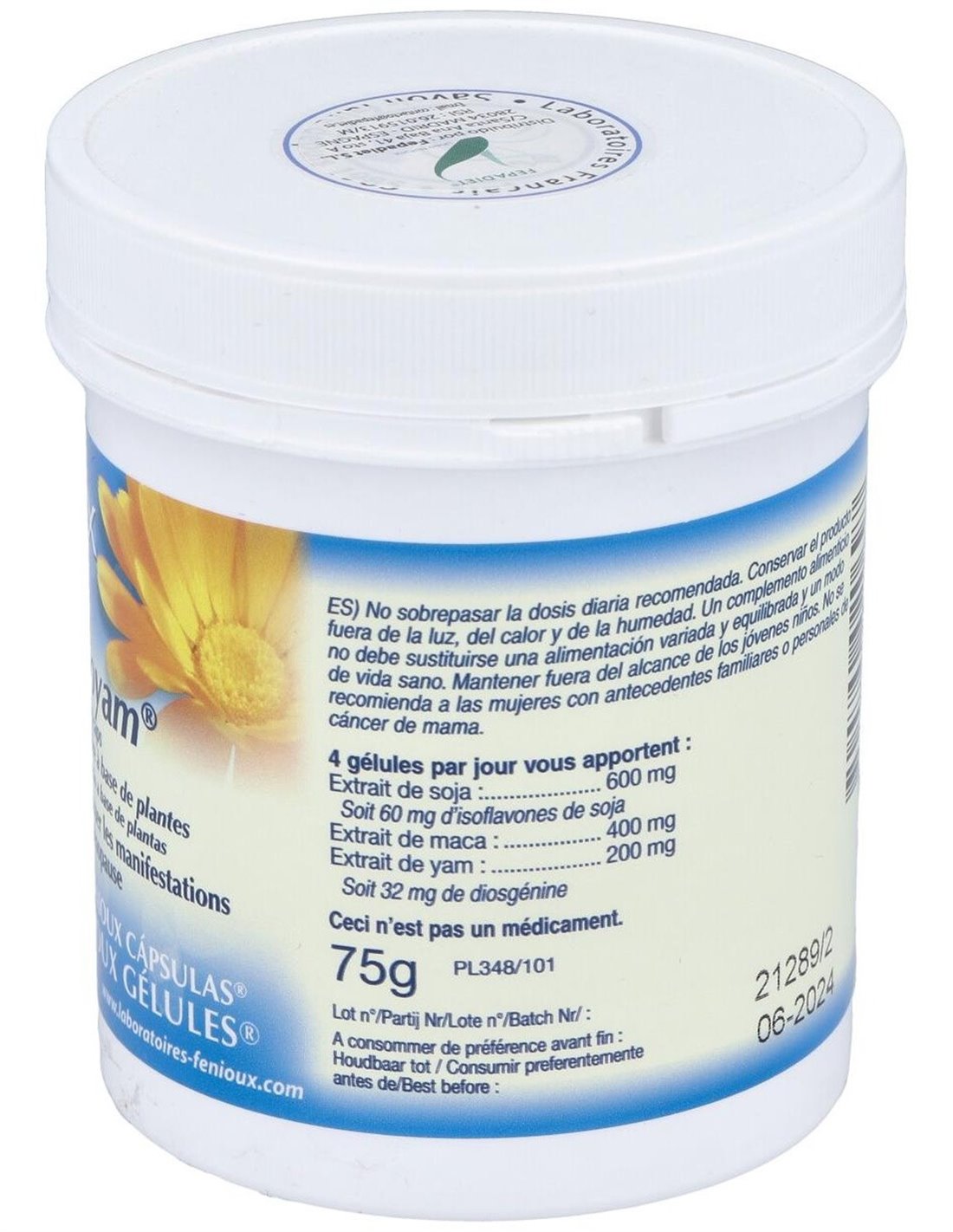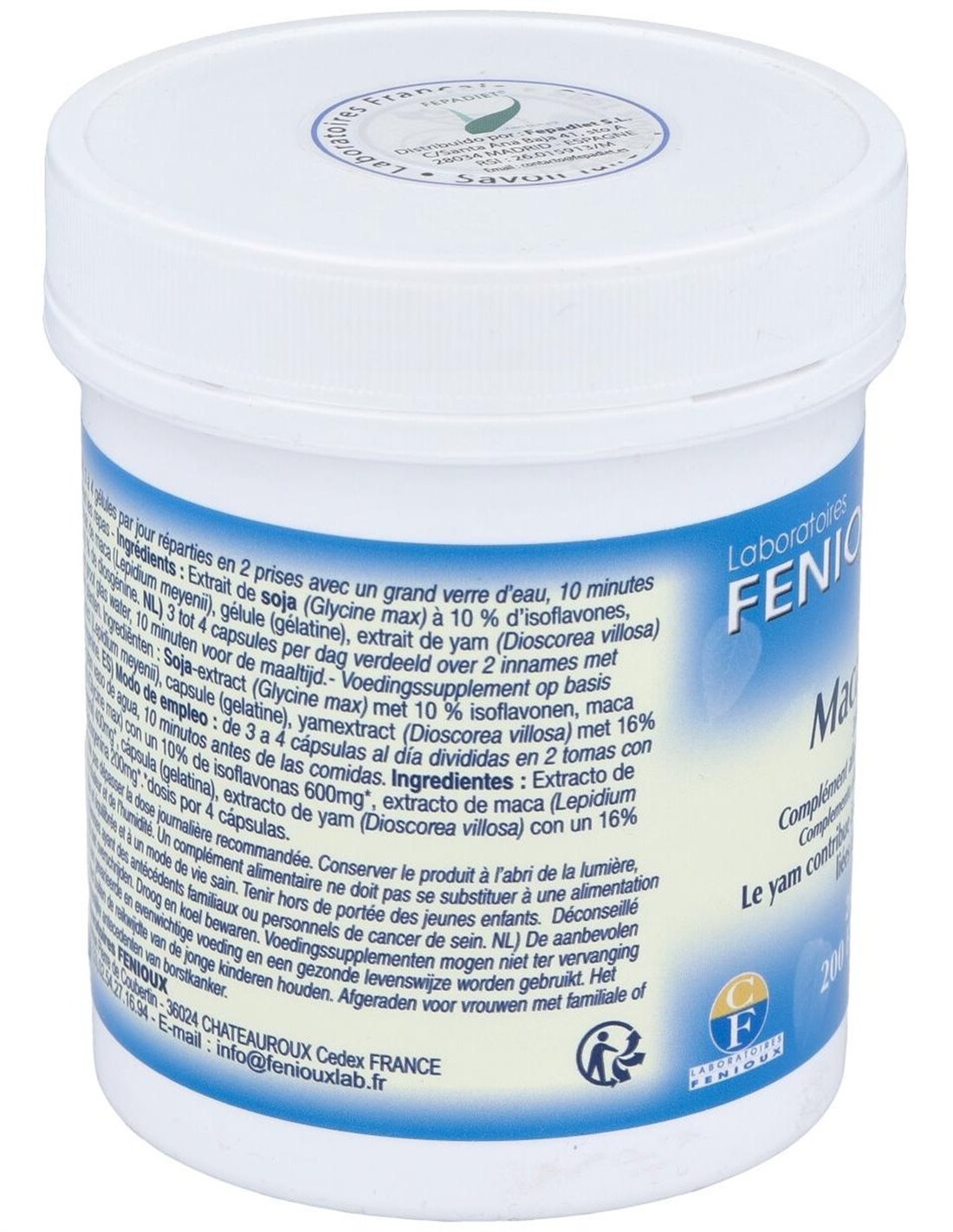 Complemento alimenticio formulado a base de extracto de maca y extracto de ñame. Frasco de 200 cápsulas. Ayuda a reducir los síntomas de fatiga asociados a la menopausia y a estimular el deseo sexual. Indicado para mujeres a partir de los 40 años. No apto para mujeres con antecedentes de cáncer de mama.