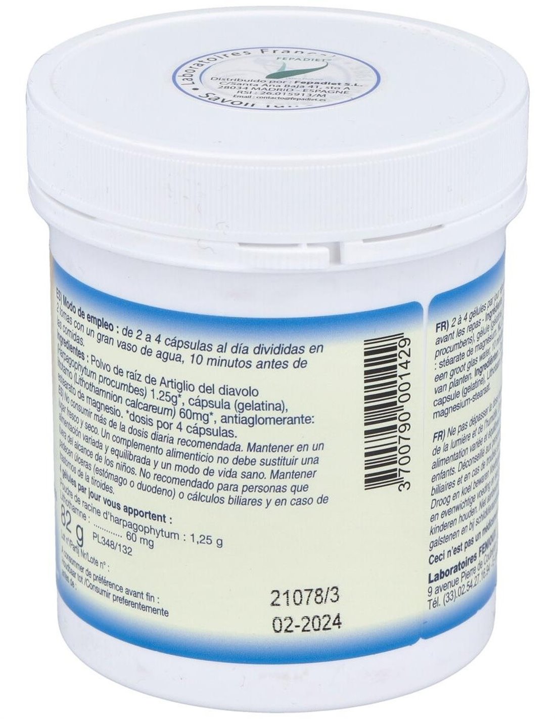 Complemento alimenticio formulado a base de extracto estandarizado de harpagofito. Utilizado por contener propiedades antiinflamatorias, diuréticas, cicatrizantes, digestivas y analgésicas, que ayudan a aliviar dolores en las articulaciones. Es harpagofito es una planta del continente africano, con grandes flores y posee una gran resistencia a temperaturas extremas, capaz de retener agua y nutrientes. Tiene una larga raíz, que puede alcanzar el metro de longitud y contiene las sustancias con propiedades terapéuticas: harpagina, fitoesteroles y flavonoides.